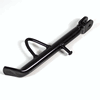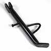 The side stand, also known as the kickstand, is a support mechanism on a motorcycle that allows it to remain upright when parked. It is typically mounted on the left side of the motorcycle and extends downward to rest on the ground. When deployed, the side stand stabilizes the motorcycle by providing a solid base, preventing it from tipping over. The stand is often equipped with a spring mechanism that automatically retracts it when the motorcycle is in use, and may include a safety switch to prevent engine start if the stand is down.