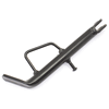 The side stand, also known as the kickstand, is a support mechanism on a motorcycle that allows it to remain upright when parked. It is typically mounted on the left side of the motorcycle and extends downward to rest on the ground. When deployed, the side stand stabilizes the motorcycle by providing a solid base, preventing it from tipping over. The stand is often equipped with a spring mechanism that automatically retracts it when the motorcycle is in use, and may include a safety switch to prevent engine start if the stand is down.