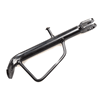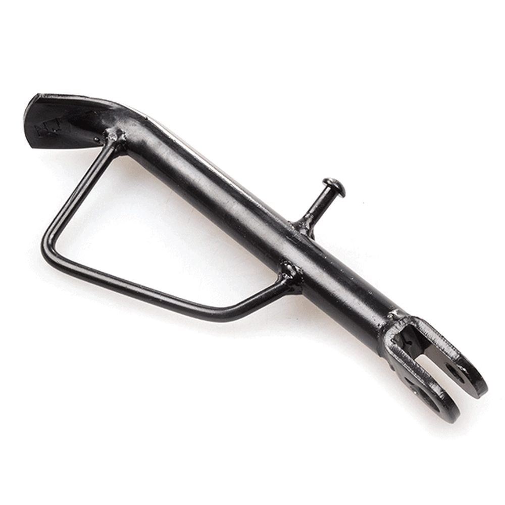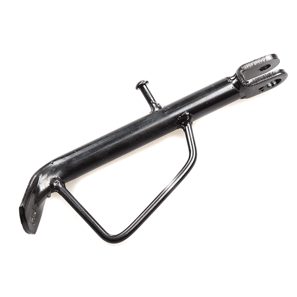 The side stand, also known as the kickstand, is a support mechanism on a motorcycle that allows it to remain upright when parked. It is typically mounted on the left side of the motorcycle and extends downward to rest on the ground. When deployed, the side stand stabilizes the motorcycle by providing a solid base, preventing it from tipping over. The stand is often equipped with a spring mechanism that automatically retracts it when the motorcycle is in use, and may include a safety switch to prevent engine start if the stand is down.