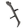 The side stand, also known as the kickstand, is a support mechanism on a motorcycle that allows it to remain upright when parked. It is typically mounted on the left side of the motorcycle and extends downward to rest on the ground. When deployed, the side stand stabilizes the motorcycle by providing a solid base, preventing it from tipping over. The stand is often equipped with a spring mechanism that automatically retracts it when the motorcycle is in use, and may include a safety switch to prevent engine start if the stand is down.