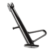 The side stand, also known as the kickstand, is a support mechanism on a motorcycle that allows it to remain upright when parked. It is typically mounted on the left side of the motorcycle and extends downward to rest on the ground. When deployed, the side stand stabilizes the motorcycle by providing a solid base, preventing it from tipping over. The stand is often equipped with a spring mechanism that automatically retracts it when the motorcycle is in use, and may include a safety switch to prevent engine start if the stand is down.