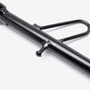 The side stand, also known as the kickstand, is a support mechanism on a motorcycle that allows it to remain upright when parked. It is typically mounted on the left side of the motorcycle and extends downward to rest on the ground. When deployed, the side stand stabilizes the motorcycle by providing a solid base, preventing it from tipping over. The stand is often equipped with a spring mechanism that automatically retracts it when the motorcycle is in use, and may include a safety switch to prevent engine start if the stand is down.