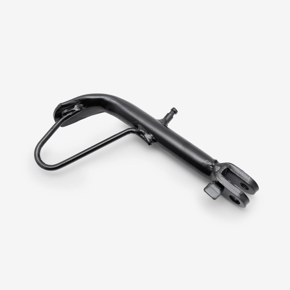 The side stand, also known as the kickstand, is a support mechanism on a motorcycle that allows it to remain upright when parked. It is typically mounted on the left side of the motorcycle and extends downward to rest on the ground. When deployed, the side stand stabilizes the motorcycle by providing a solid base, preventing it from tipping over. The stand is often equipped with a spring mechanism that automatically retracts it when the motorcycle is in use, and may include a safety switch to prevent engine start if the stand is down.