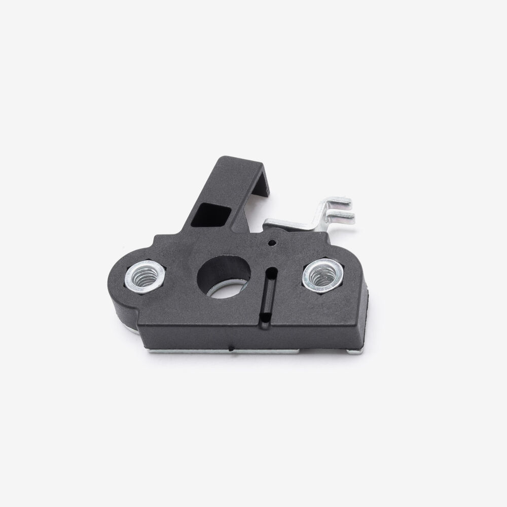 The seat latch on a motorcycle is a mechanism used to secure the seat or seat panel in place on the motorcycle's frame. It typically consists of a latch or catch and a corresponding latch plate or bracket. The latch allows the rider to easily access or remove the seat for maintenance or storage, while ensuring it is securely fastened during riding. Proper functioning of the seat latch is essential for safety and comfort, preventing the seat from shifting or detaching while the motorcycle is in use.