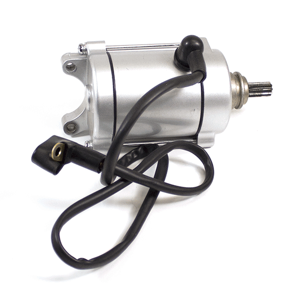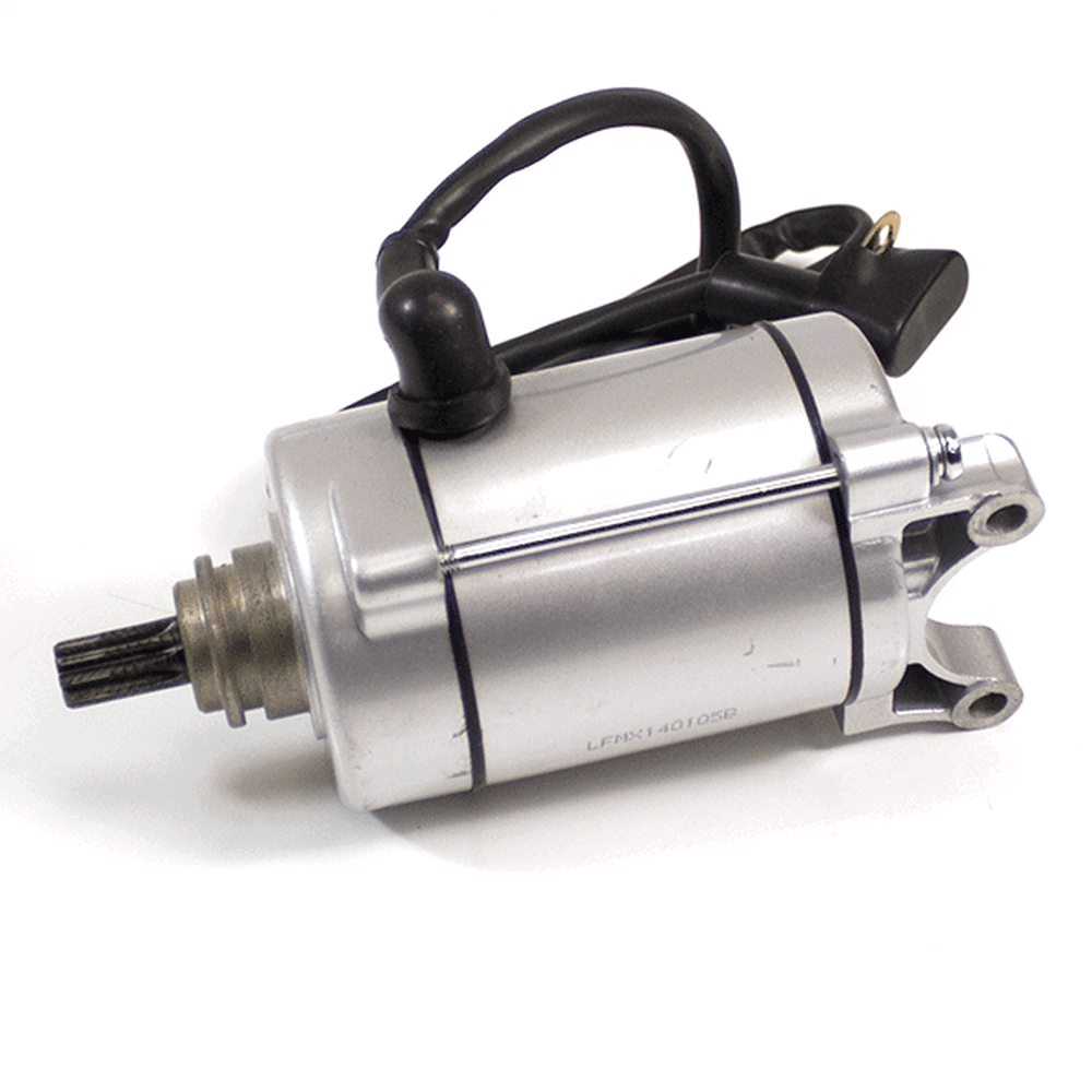 The starter motor is responsible for turning the engine over during ignition and allowing everything else to happen. When you turn the ignition on, the starter motor engages and turns the engine over allowing it to suck in air. On the engine, a flywheel, with a ring gear attached around the edge, is fitted to the end of the crankshaft. On the starter, the pinion is designed to fit into the grooves of the ring gear. When you turn the ignition switch, the electromagnet inside the body engages & pushes out a rod to which the pinion is attached. The pinion meets the flywheel and the starter motor turns. This spins the engine over, sucking in air (as well as fuel). As the engine turns over, the starter motor disengages, and the electromagnet stops.
