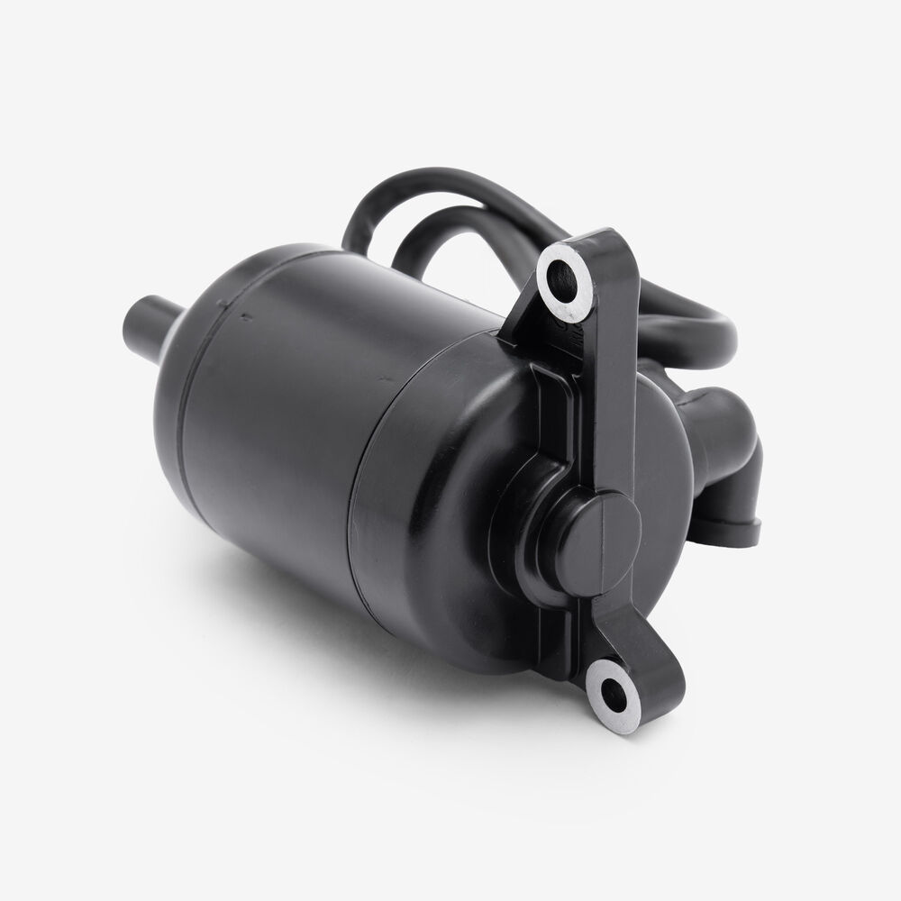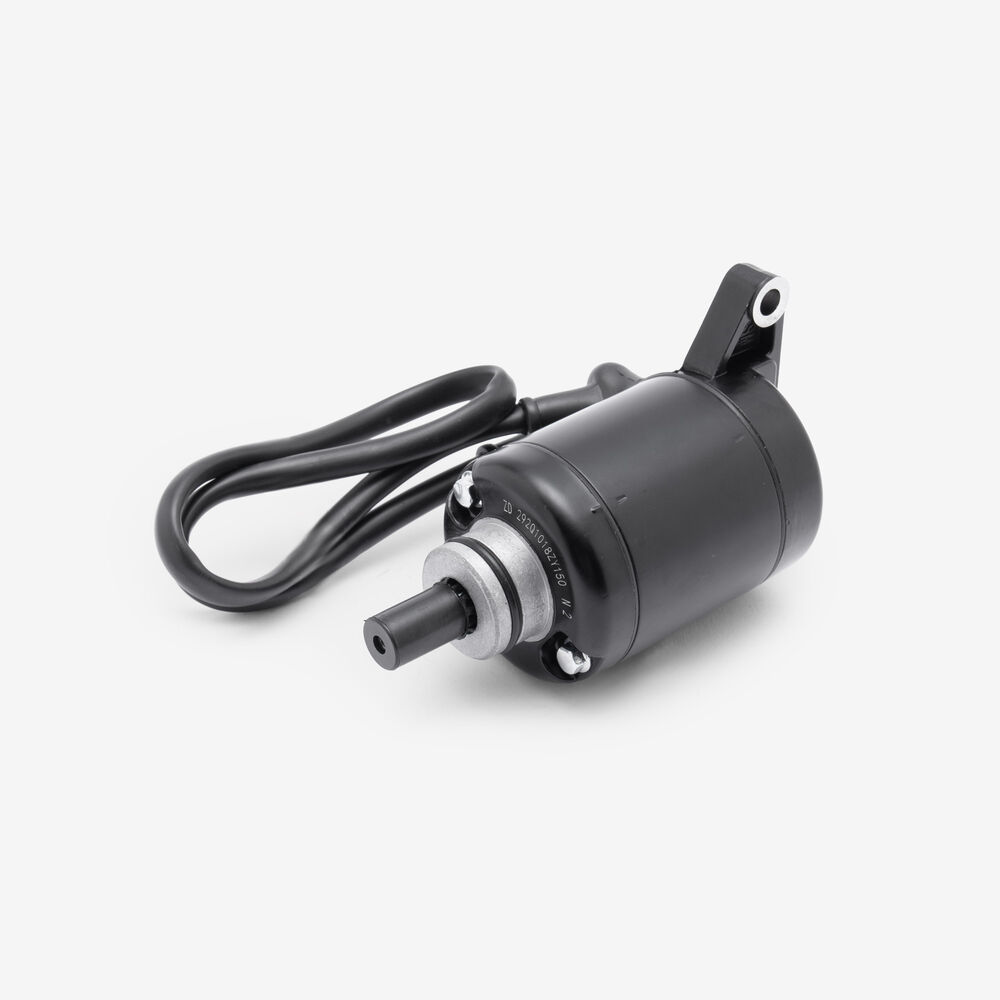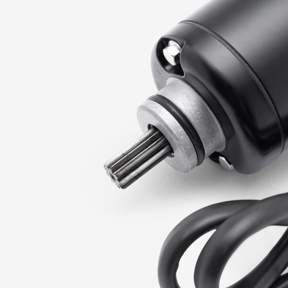 The starter motor is responsible for turning the engine over during ignition and allowing everything else to happen. When you turn the ignition on, the starter motor engages and turns the engine over allowing it to suck in air. On the engine, a flywheel, with a ring gear attached around the edge, is fitted to the end of the crankshaft. On the starter, the pinion is designed to fit into the grooves of the ring gear. When you turn the ignition switch, the electromagnet inside the body engages & pushes out a rod to which the pinion is attached. The pinion meets the flywheel and the starter motor turns. This spins the engine over, sucking in air (as well as fuel). As the engine turns over, the starter motor disengages, and the electromagnet stops.
