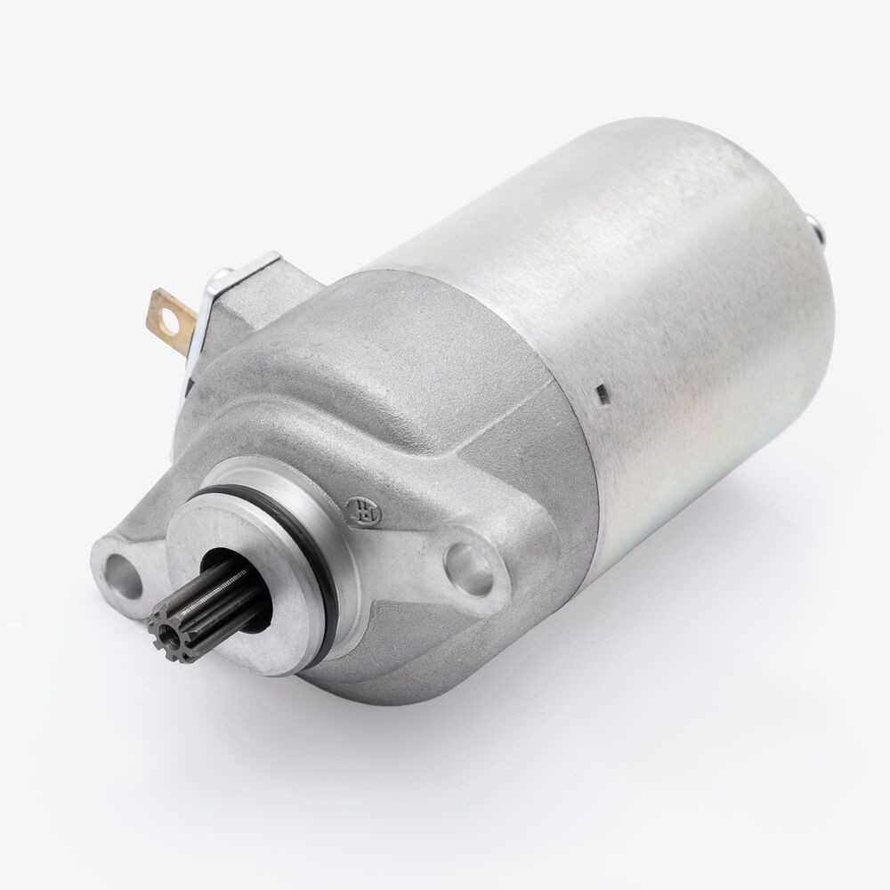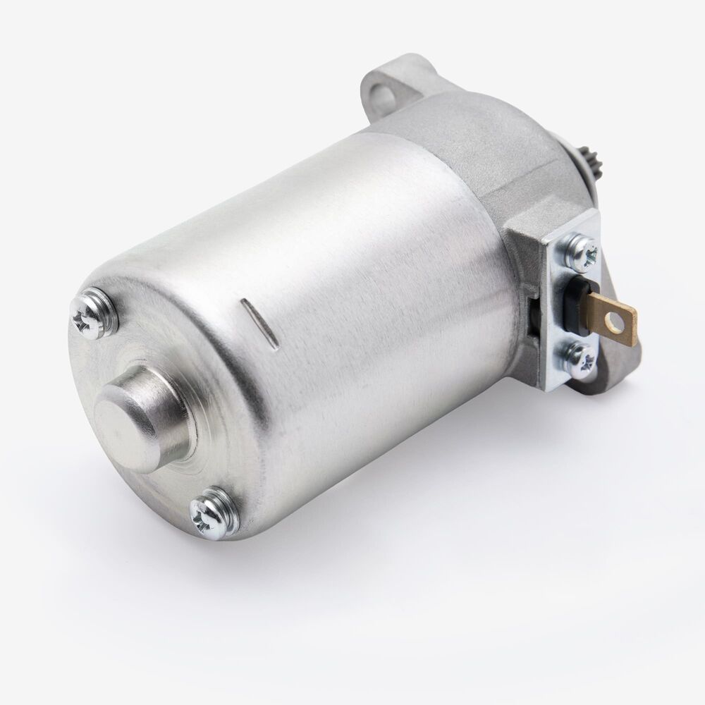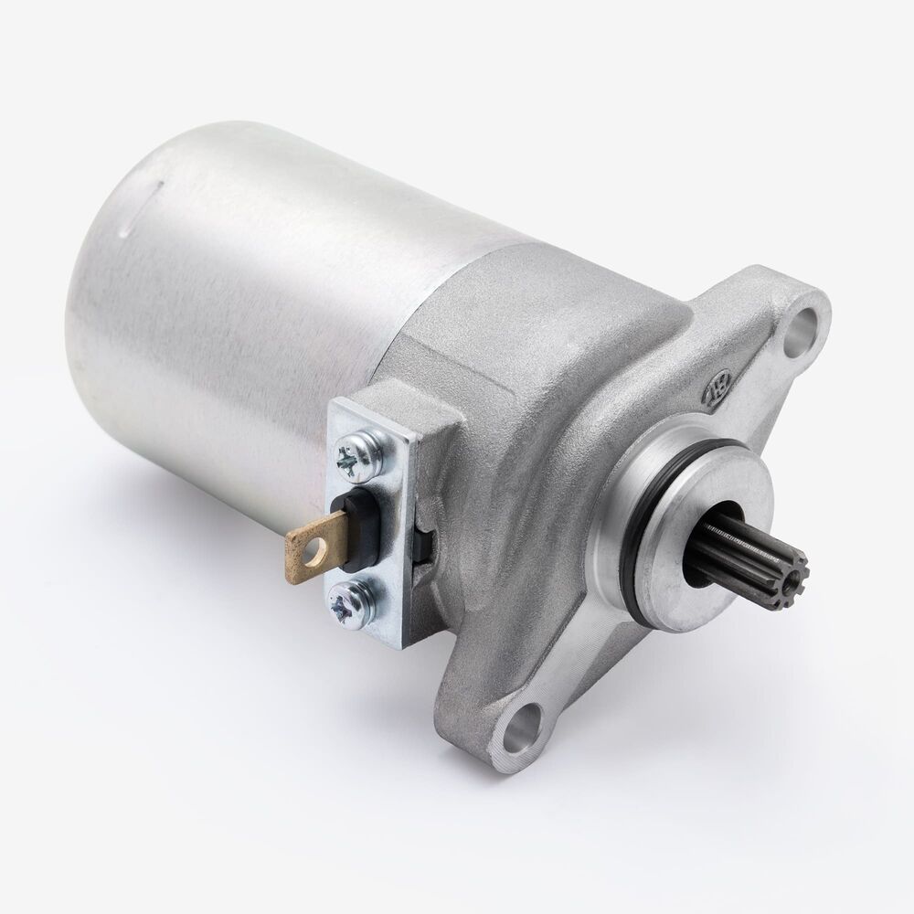 The starter motor is responsible for turning the engine over during ignition and allowing everything else to happen. When you turn the ignition on, the starter motor engages and turns the engine over allowing it to suck in air. On the engine, a flywheel, with a ring gear attached around the edge, is fitted to the end of the crankshaft. On the starter, the pinion is designed to fit into the grooves of the ring gear. When you turn the ignition switch, the electromagnet inside the body engages & pushes out a rod to which the pinion is attached. The pinion meets the flywheel and the starter motor turns. This spins the engine over, sucking in air (as well as fuel). As the engine turns over, the starter motor disengages, and the electromagnet stops.