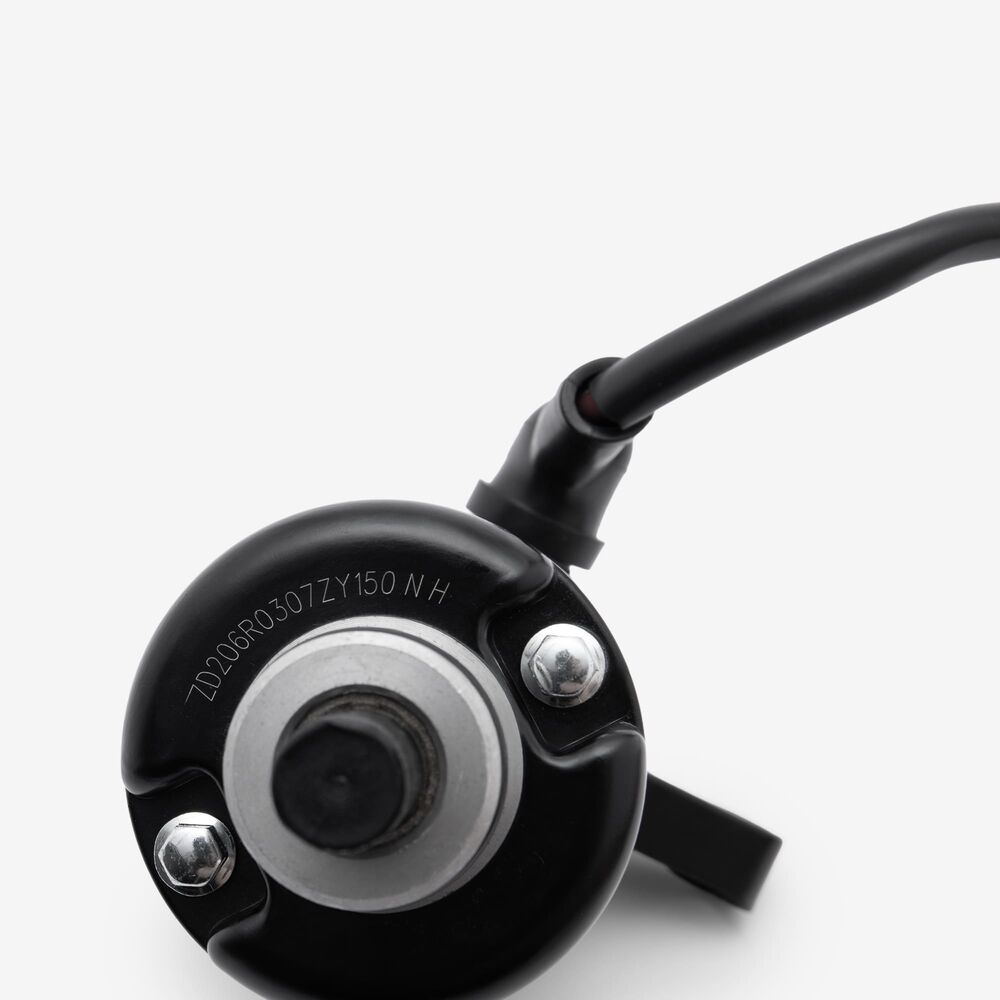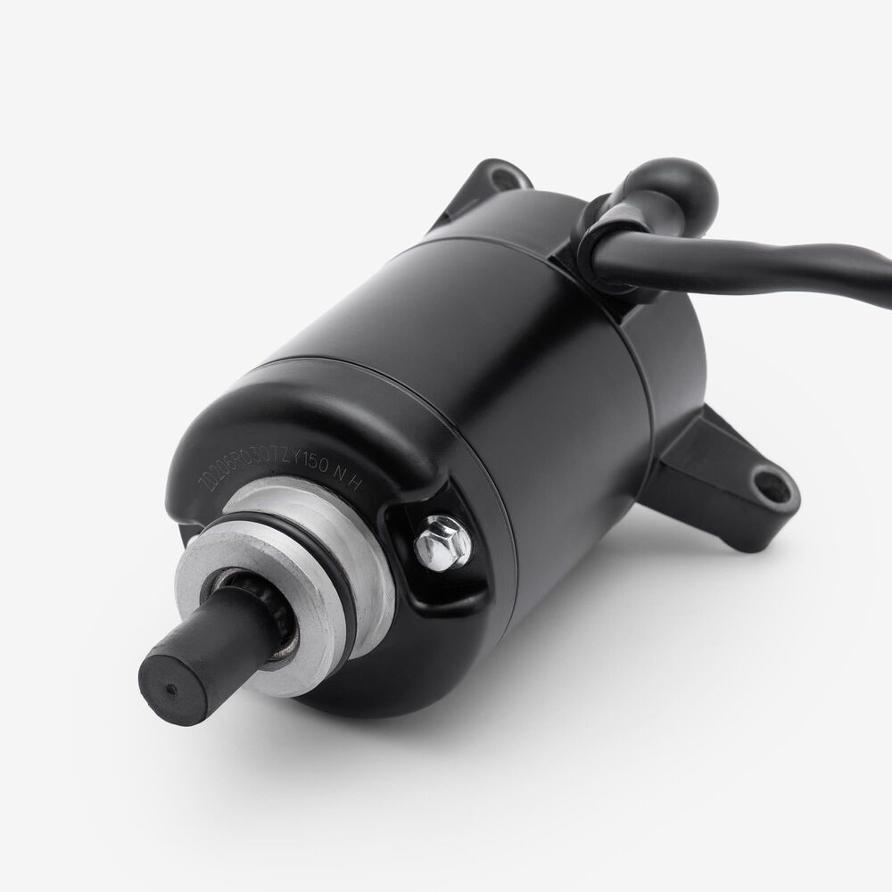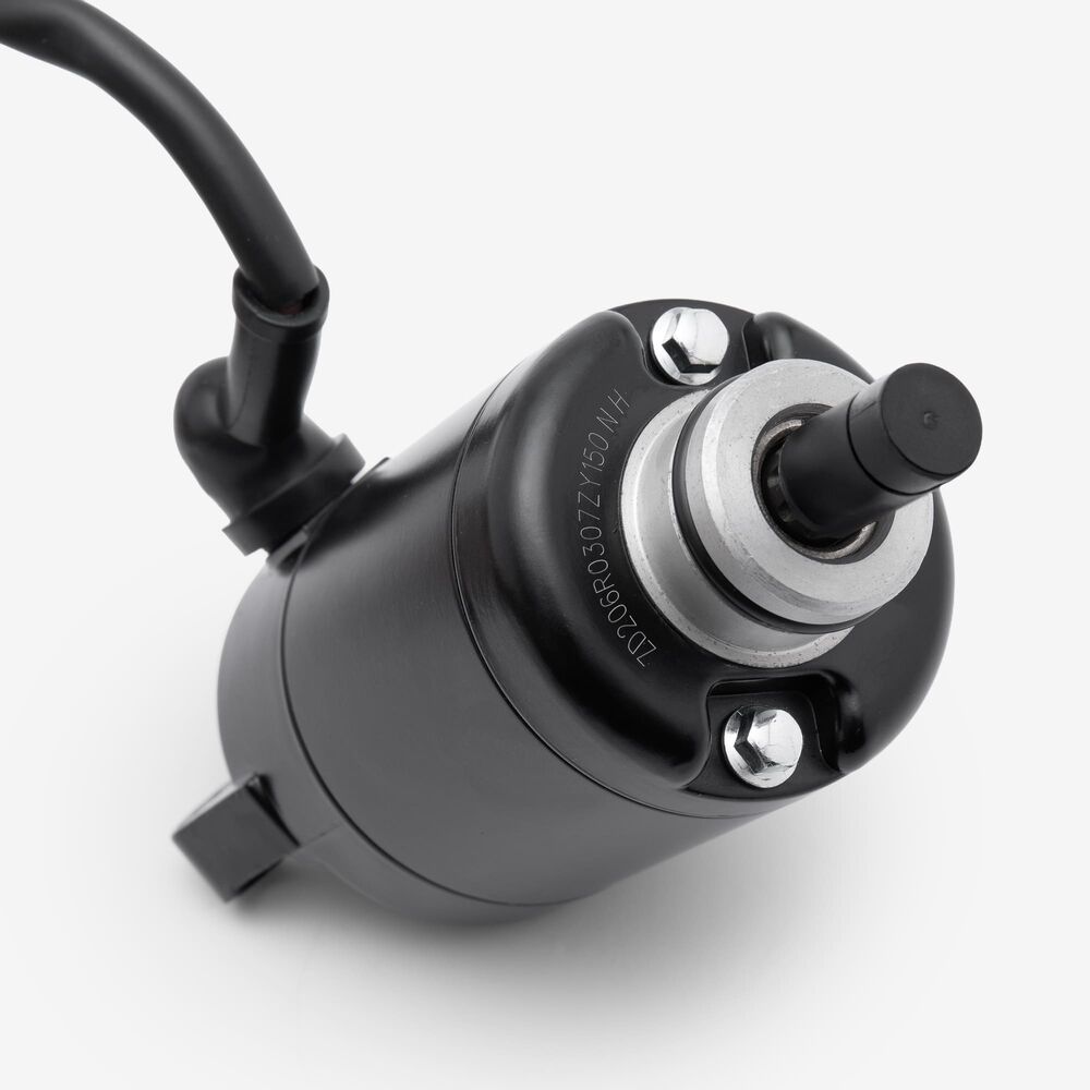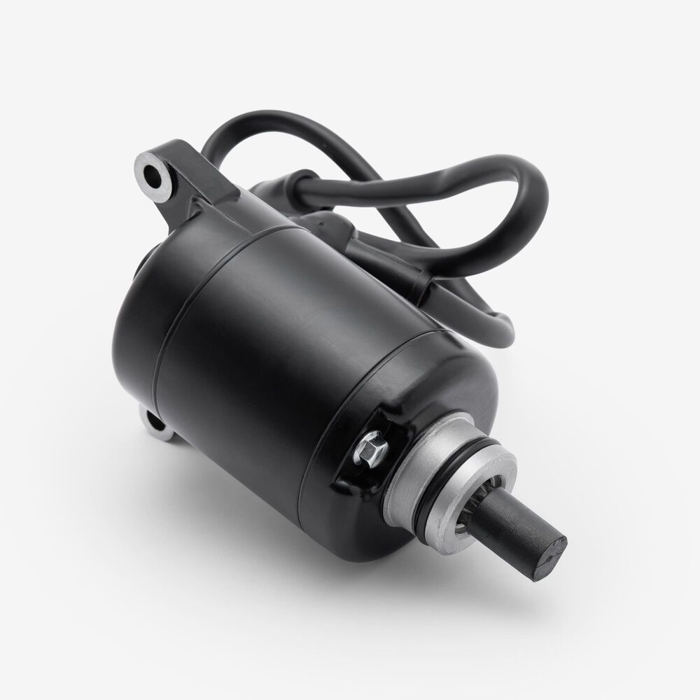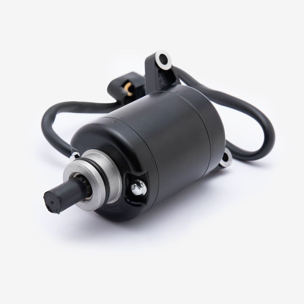 The starter motor is responsible for turning the engine over during ignition and allowing everything else to happen. When you turn the ignition on, the starter motor engages and turns the engine over allowing it to suck in air. On the engine, a flywheel, with a ring gear attached around the edge, is fitted to the end of the crankshaft. On the starter, the pinion is designed to fit into the grooves of the ring gear. When you turn the ignition switch, the electromagnet inside the body engages & pushes out a rod to which the pinion is attached. The pinion meets the flywheel and the starter motor turns. This spins the engine over, sucking in air (as well as fuel). As the engine turns over, the starter motor disengages, and the electromagnet stops.
