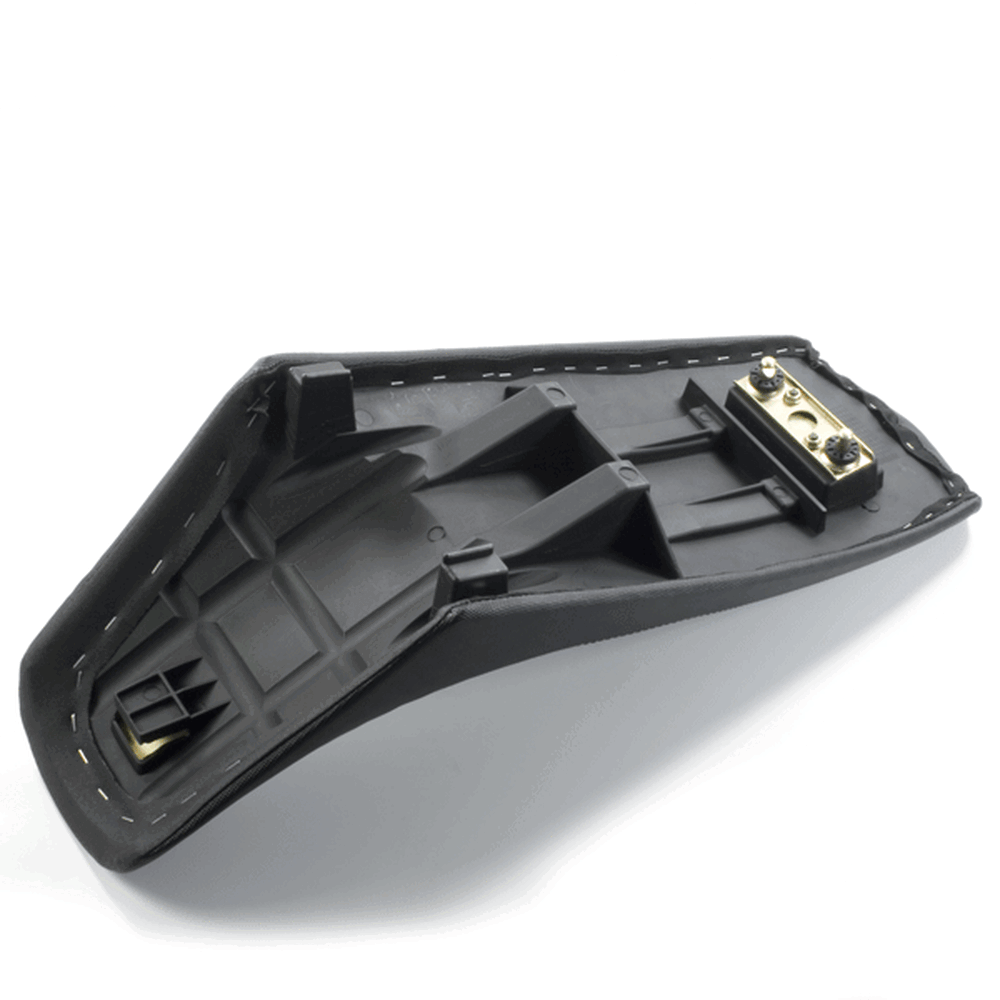 The rider's seat on a motorcycle is the primary seating area designed for the person operating the bike. It is engineered for comfort and support, featuring cushioning and ergonomic design to accommodate long rides and varying riding positions. The rider's seat is typically located directly above the motorcycle's frame and may include additional features such as adjustable settings, lumbar support, or a non-slip surface. Its design is crucial for maintaining balance, control, and overall riding comfort.