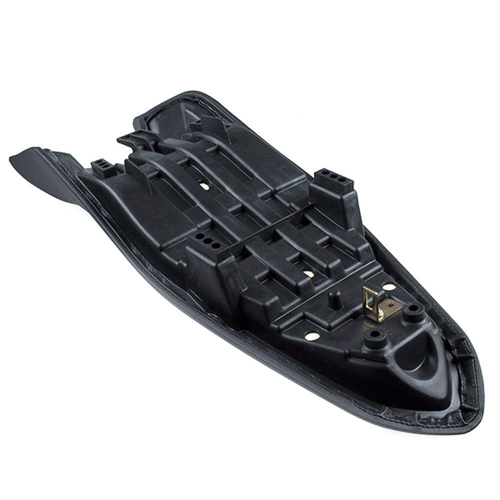 The rider's seat on a motorcycle is the primary seating area designed for the person operating the bike. It is engineered for comfort and support, featuring cushioning and ergonomic design to accommodate long rides and varying riding positions. The rider's seat is typically located directly above the motorcycle's frame and may include additional features such as adjustable settings, lumbar support, or a non-slip surface. Its design is crucial for maintaining balance, control, and overall riding comfort.
