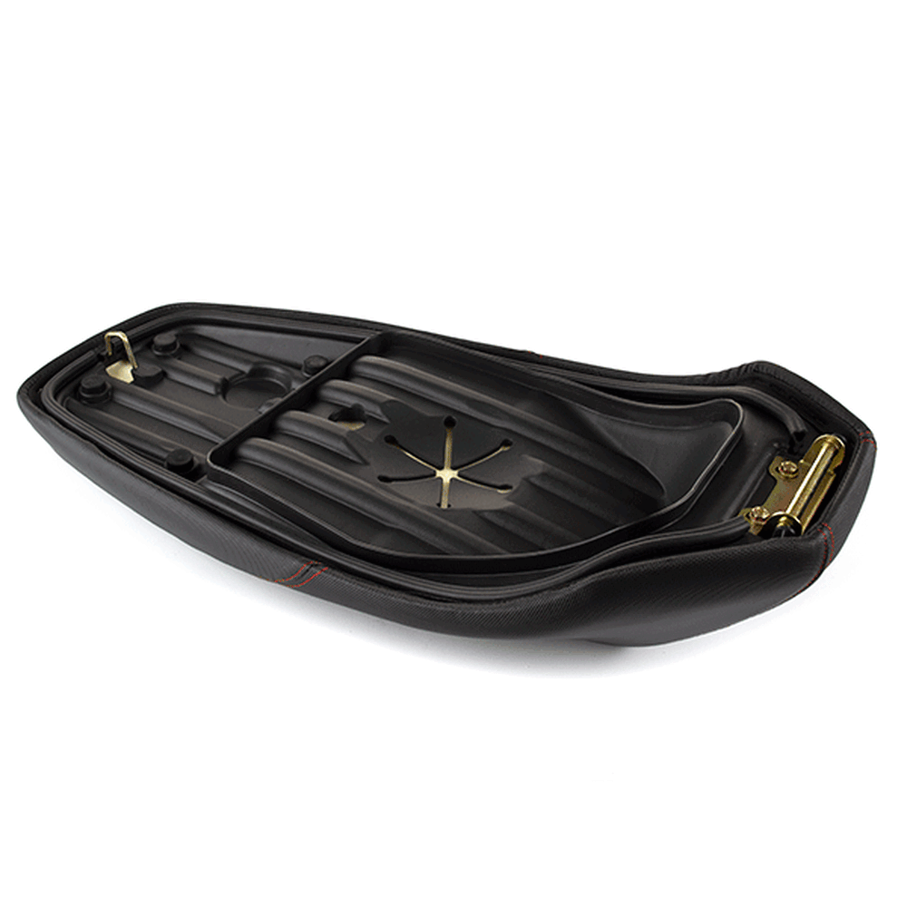 The rider's seat on a motorcycle is the primary seating area designed for the person operating the bike. It is engineered for comfort and support, featuring cushioning and ergonomic design to accommodate long rides and varying riding positions. The rider's seat is typically located directly above the motorcycle's frame and may include additional features such as adjustable settings, lumbar support, or a non-slip surface. Its design is crucial for maintaining balance, control, and overall riding comfort.