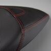 The rider's seat on a motorcycle is the primary seating area designed for the person operating the bike. It is engineered for comfort and support, featuring cushioning and ergonomic design to accommodate long rides and varying riding positions. The rider's seat is typically located directly above the motorcycle's frame and may include additional features such as adjustable settings, lumbar support, or a non-slip surface. Its design is crucial for maintaining balance, control, and overall riding comfort.