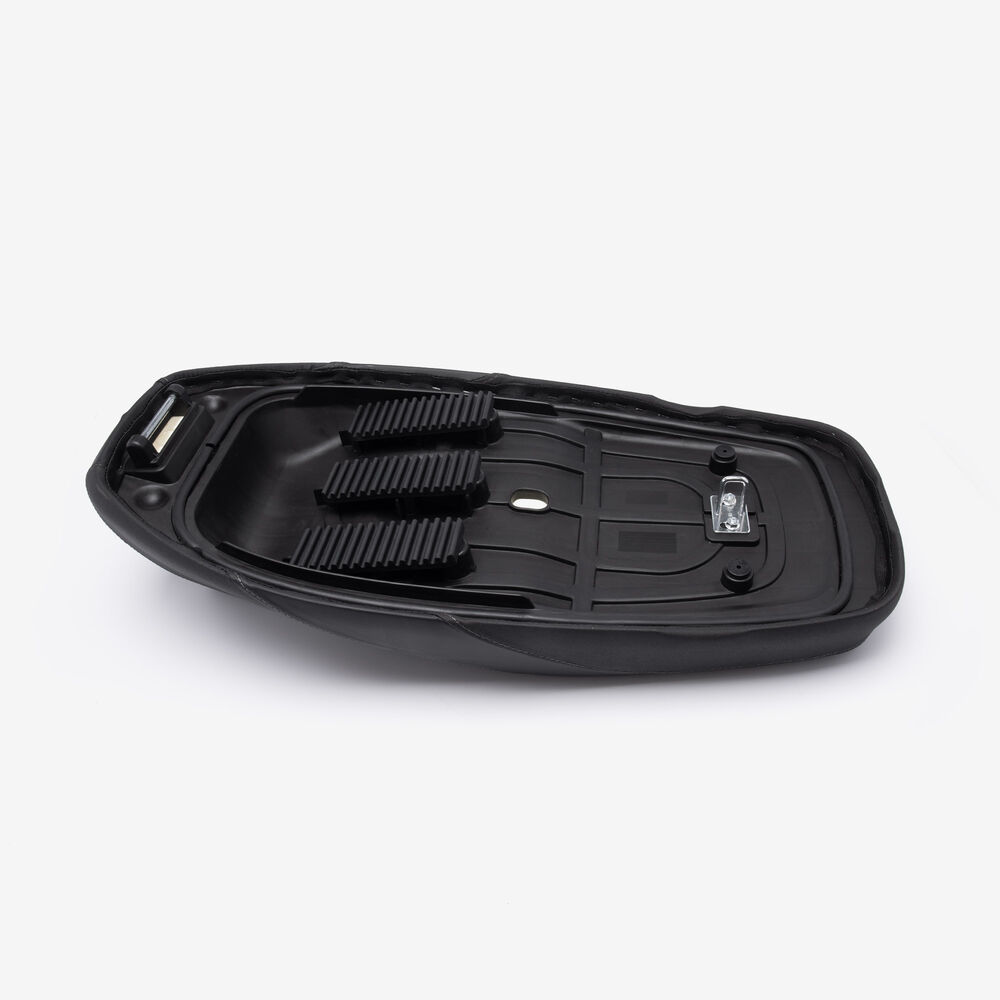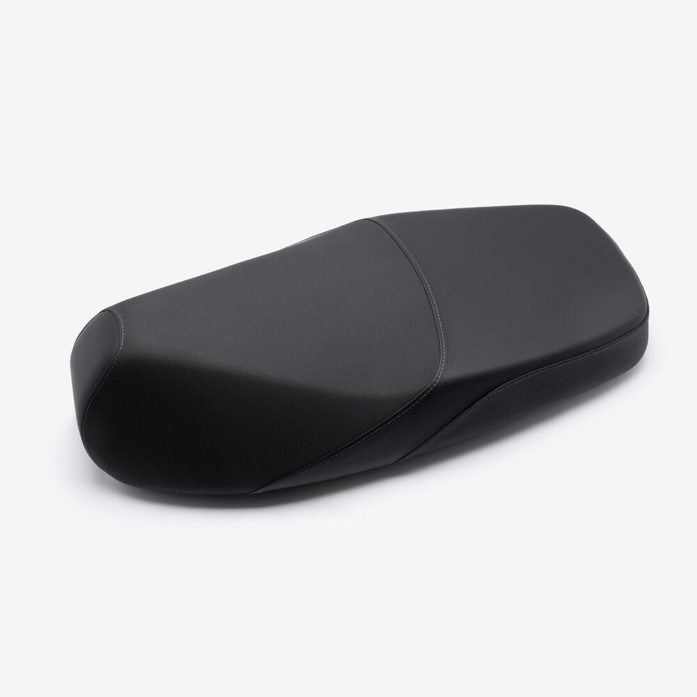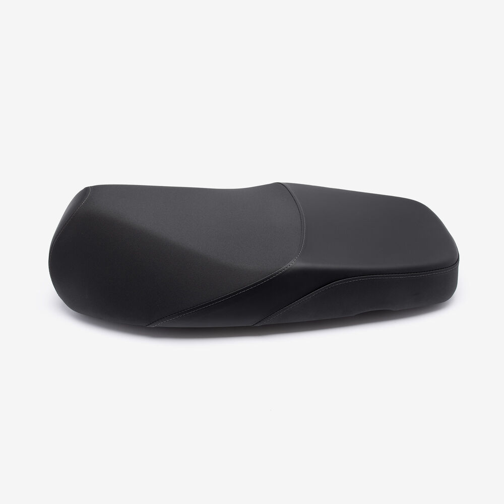The rider's seat on a motorcycle is the primary seating area designed for the person operating the bike. It is engineered for comfort and support, featuring cushioning and ergonomic design to accommodate long rides and varying riding positions. The rider's seat is typically located directly above the motorcycle's frame and may include additional features such as adjustable settings, lumbar support, or a non-slip surface. Its design is crucial for maintaining balance, control, and overall riding comfort.