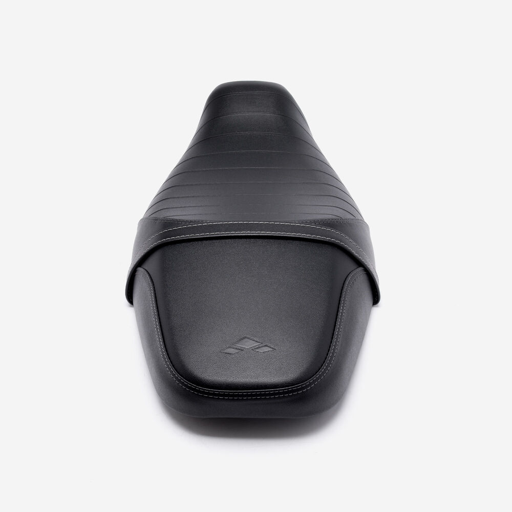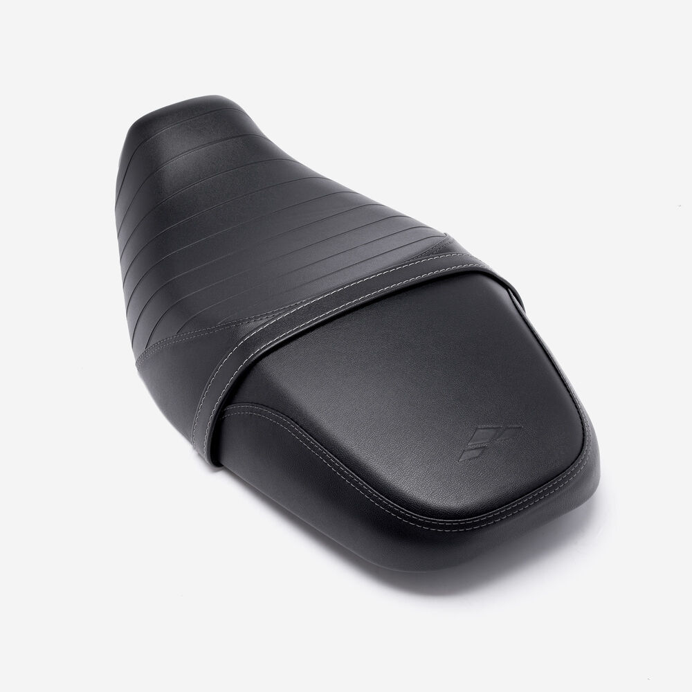 The rider's seat on a motorcycle is the primary seating area designed for the person operating the bike. It is engineered for comfort and support, featuring cushioning and ergonomic design to accommodate long rides and varying riding positions. The rider's seat is typically located directly above the motorcycle's frame and may include additional features such as adjustable settings, lumbar support, or a non-slip surface. Its design is crucial for maintaining balance, control, and overall riding comfort.