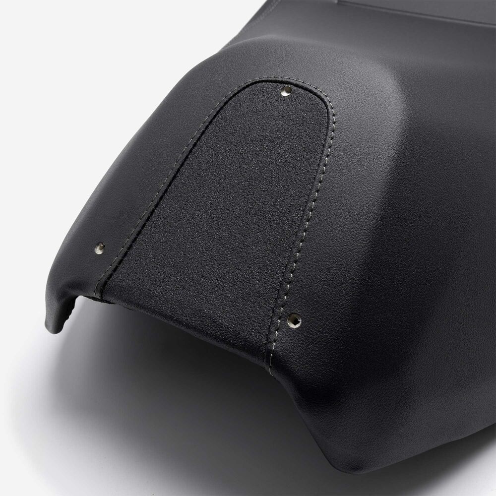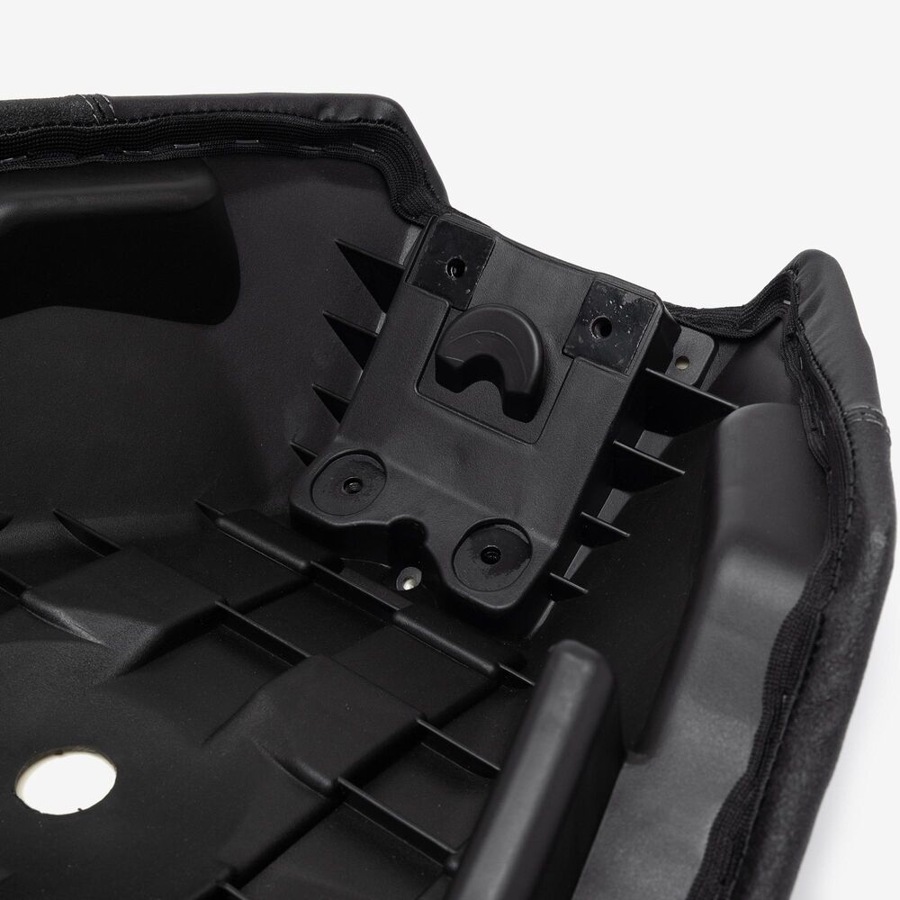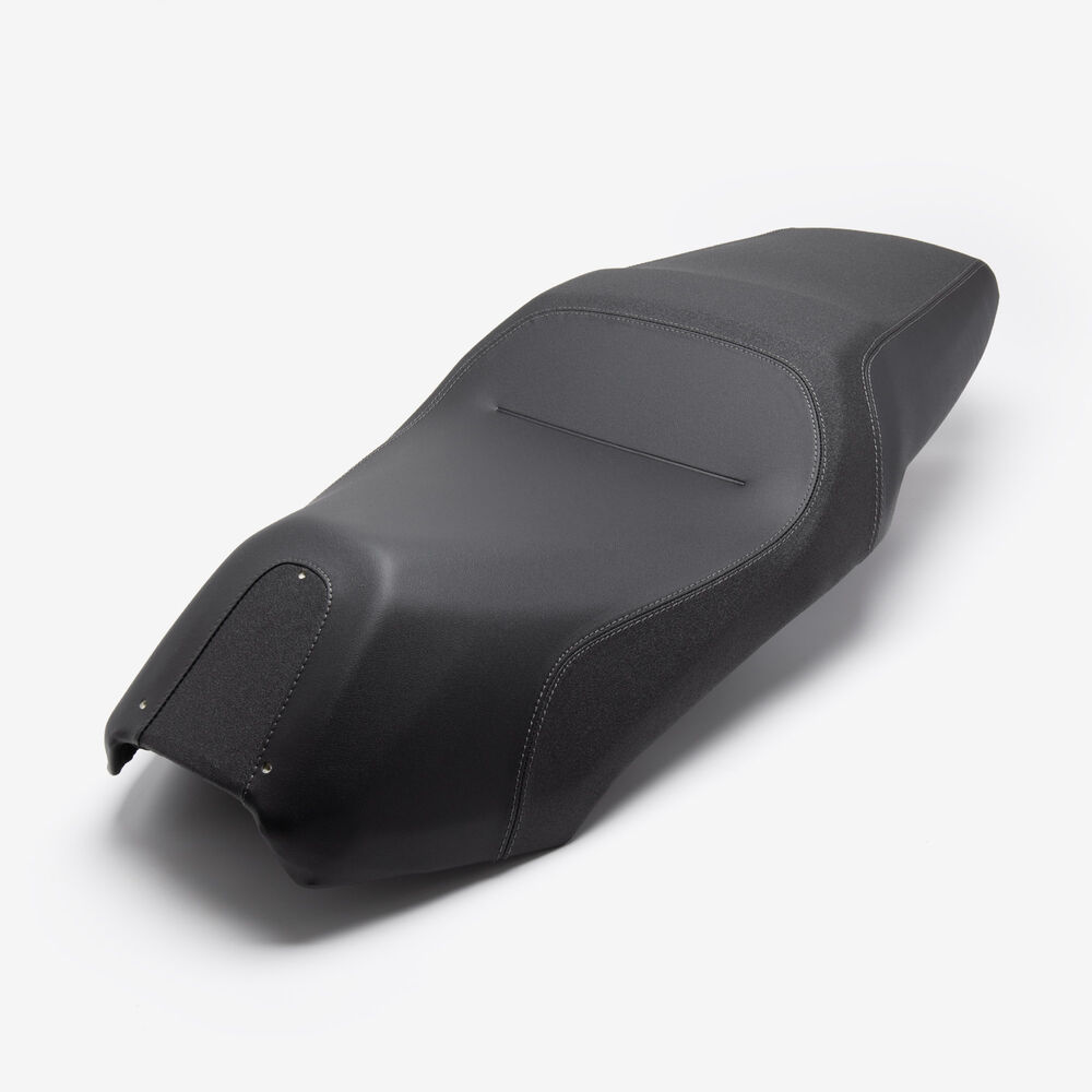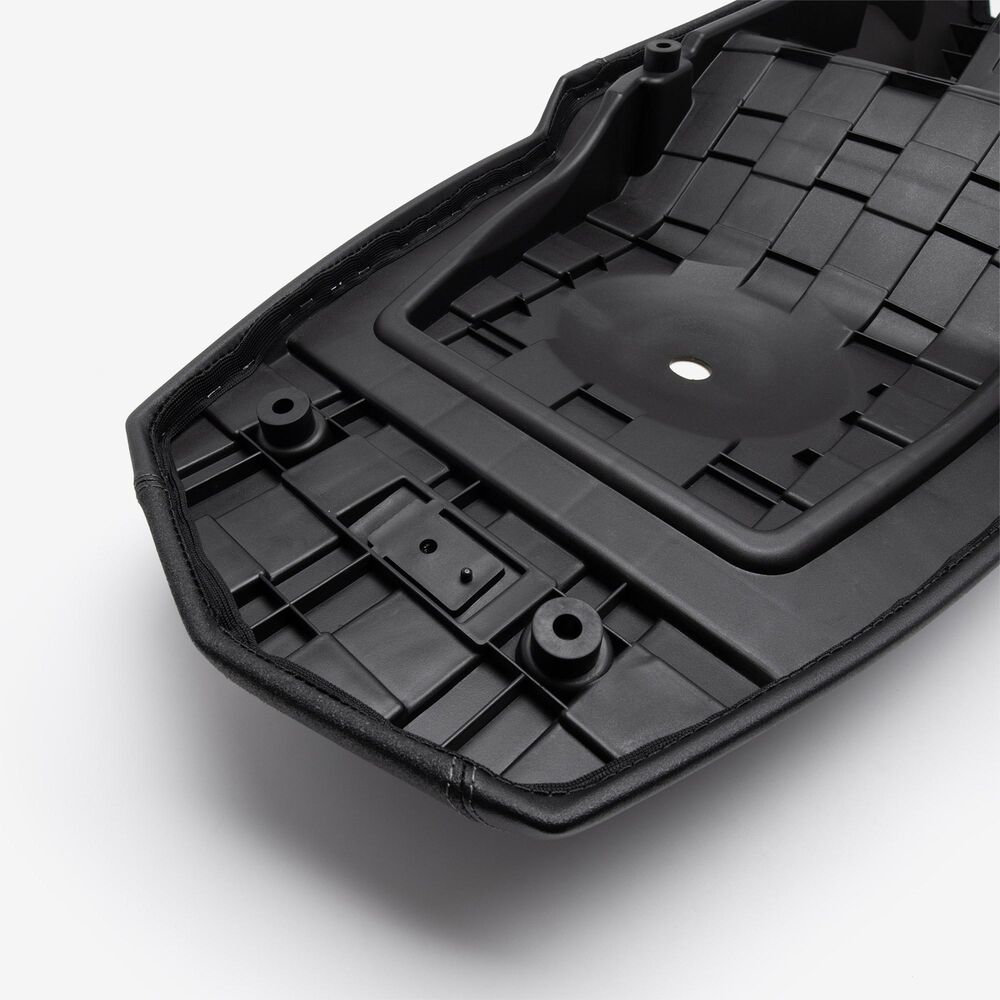 The rider's seat on a motorcycle is the primary seating area designed for the person operating the bike. It is engineered for comfort and support, featuring cushioning and ergonomic design to accommodate long rides and varying riding positions. The rider's seat is typically located directly above the motorcycle's frame and may include additional features such as adjustable settings, lumbar support, or a non-slip surface. Its design is crucial for maintaining balance, control, and overall riding comfort.