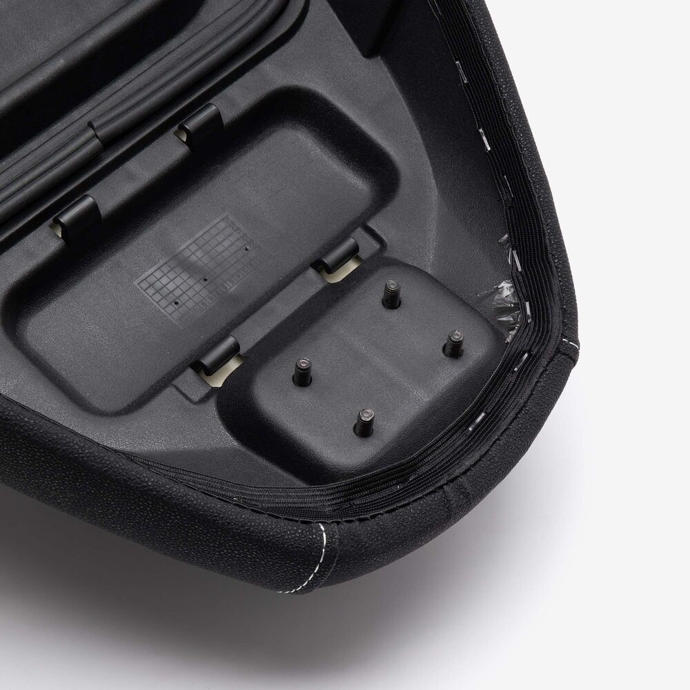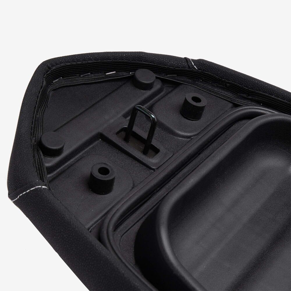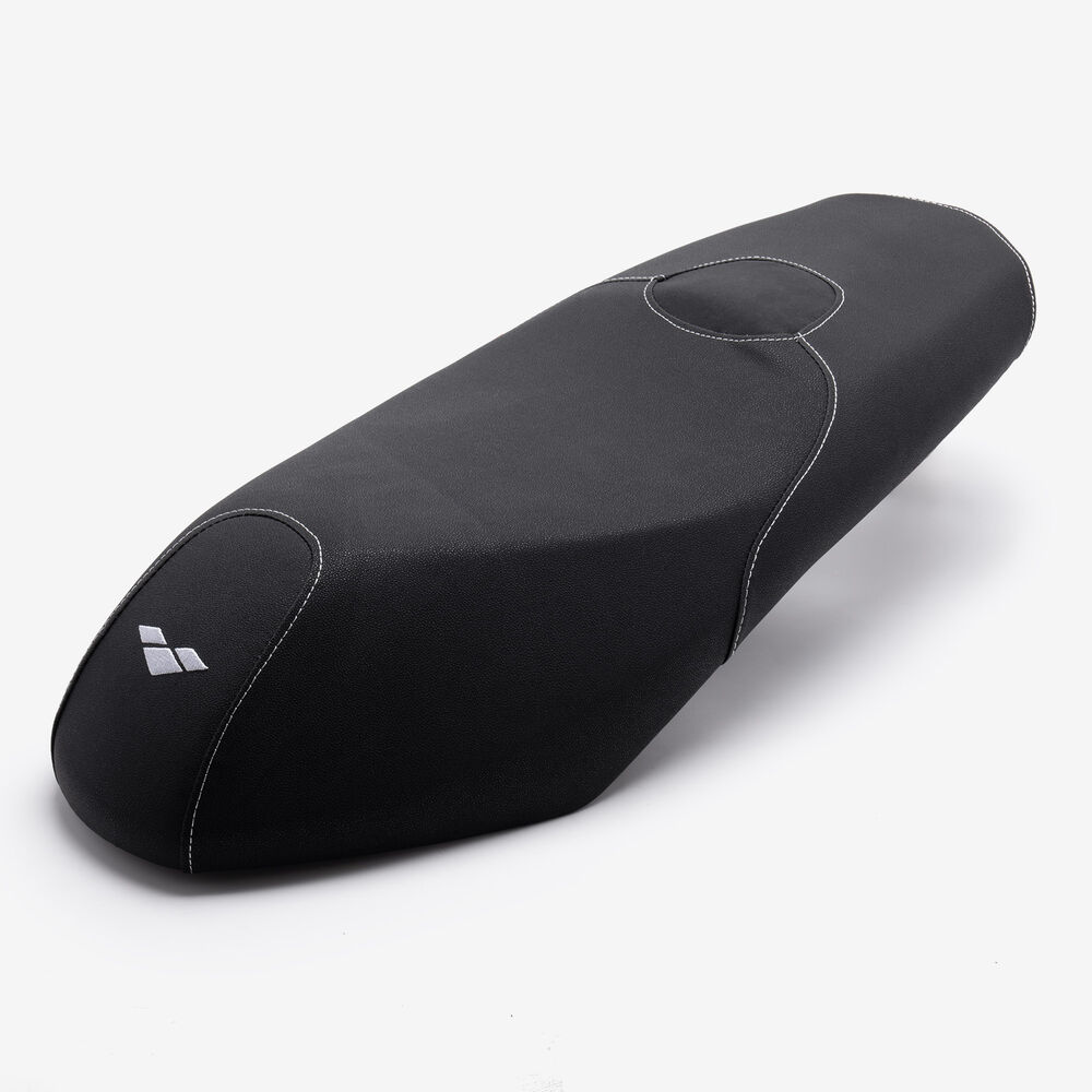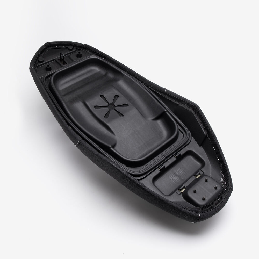 The rider's seat on a motorcycle is the primary seating area designed for the person operating the bike. It is engineered for comfort and support, featuring cushioning and ergonomic design to accommodate long rides and varying riding positions. The rider's seat is typically located directly above the motorcycle's frame and may include additional features such as adjustable settings, lumbar support, or a non-slip surface. Its design is crucial for maintaining balance, control, and overall riding comfort.