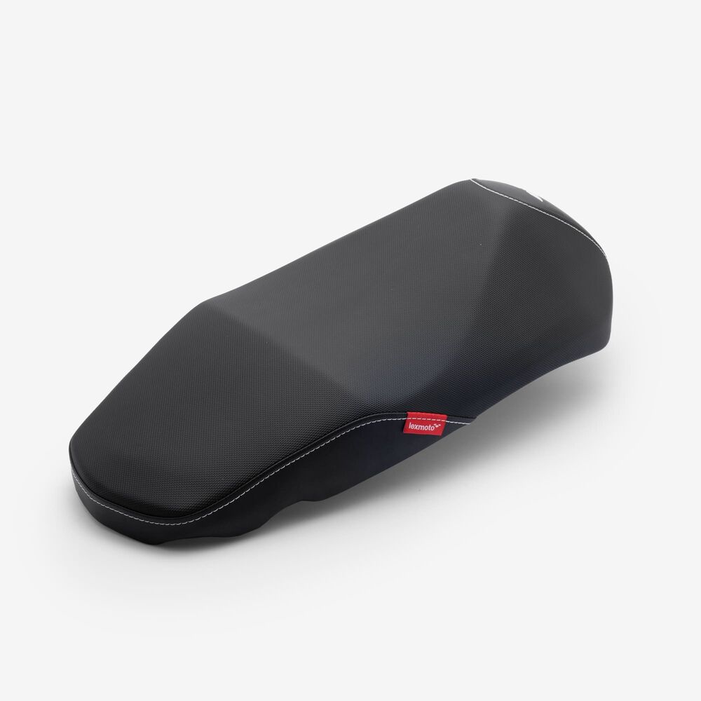 The rider's seat on a motorcycle is the primary seating area designed for the person operating the bike. It is engineered for comfort and support, featuring cushioning and ergonomic design to accommodate long rides and varying riding positions. The rider's seat is typically located directly above the motorcycle's frame and may include additional features such as adjustable settings, lumbar support, or a non-slip surface. Its design is crucial for maintaining balance, control, and overall riding comfort.