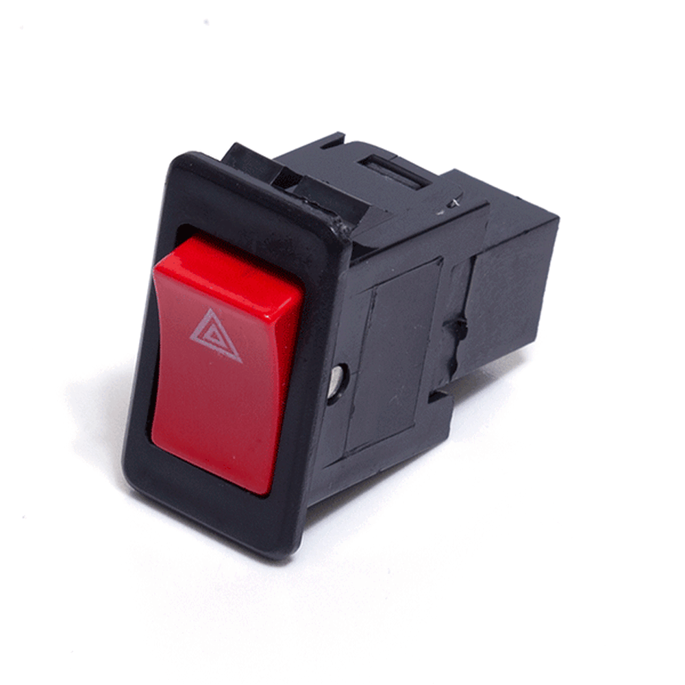 The hazard switch on a motorcycle activates the hazard lights, which simultaneously flash both the front and rear turn signals. This feature is used to alert other drivers to potential hazards, such as when the motorcycle is stopped on the roadside or in an emergency situation. The hazard switch is typically located on the handlebars or near the indicator controls, allowing the rider to easily activate the hazard lights with a single press. It enhances visibility and safety by providing a clear, attention-grabbing signal to other road users.
