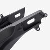 The swingarm is a key component of a motorcycle's rear suspension system. It connects the rear wheel to the motorcycle’s frame and allows the wheel to move up and down independently of the chassis. This pivoting action absorbs shocks and maintains stability, improving ride comfort and handling. The swingarm is typically made from aluminum or steel for strength and durability. It is mounted on the motorcycle's frame with a swingarm spindle or axle and is linked to the rear suspension system via a shock absorber or linkage.