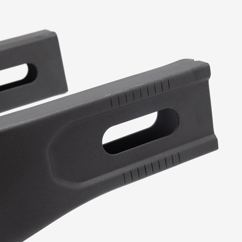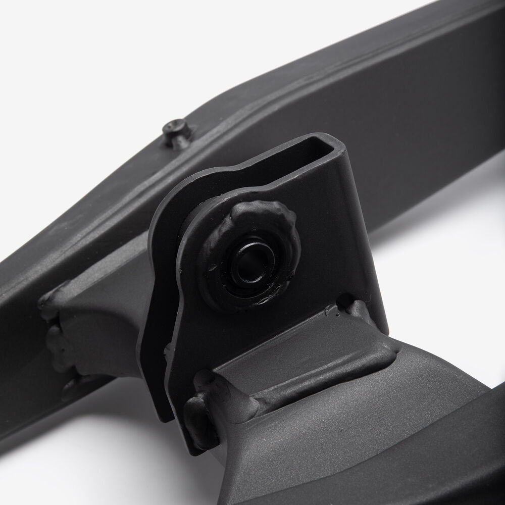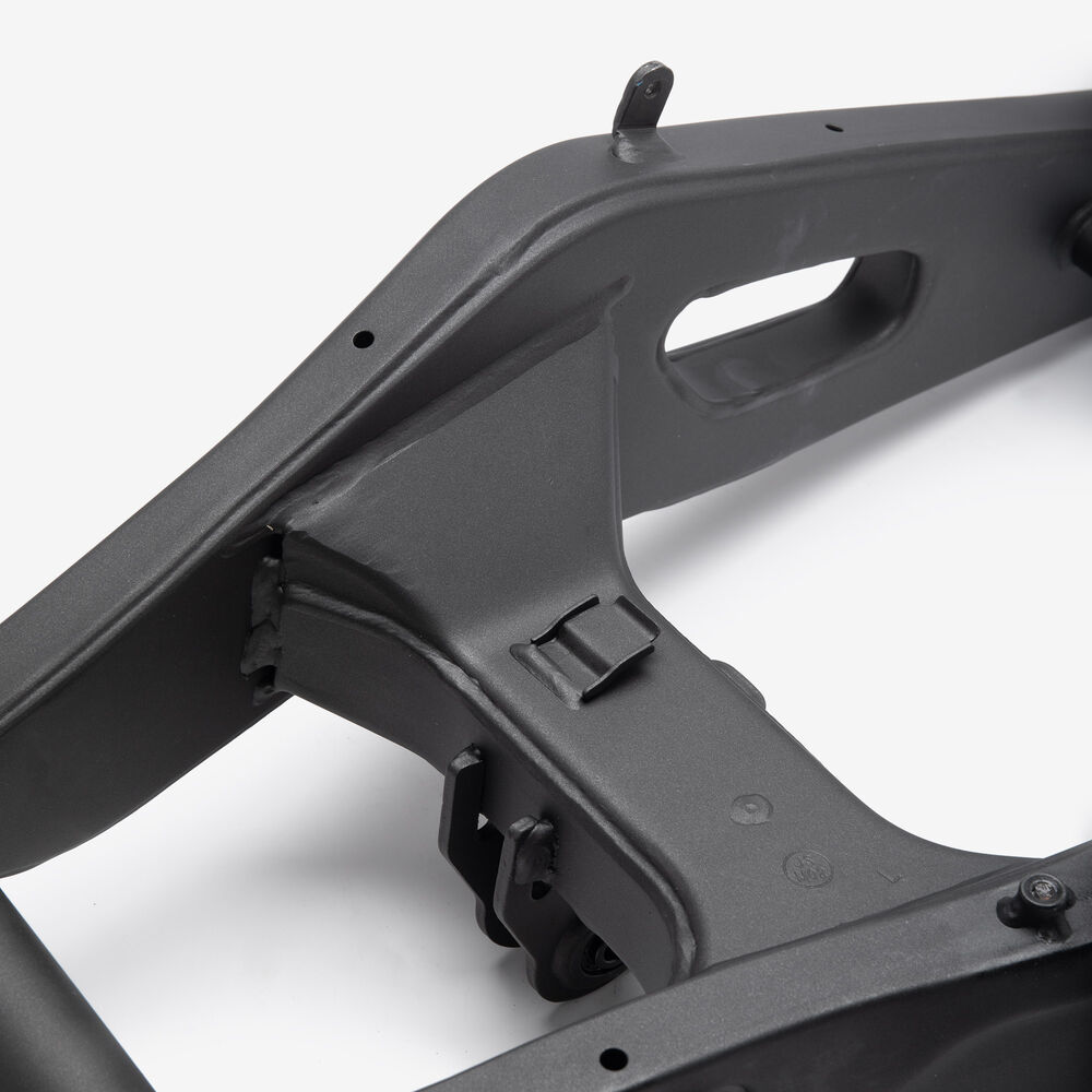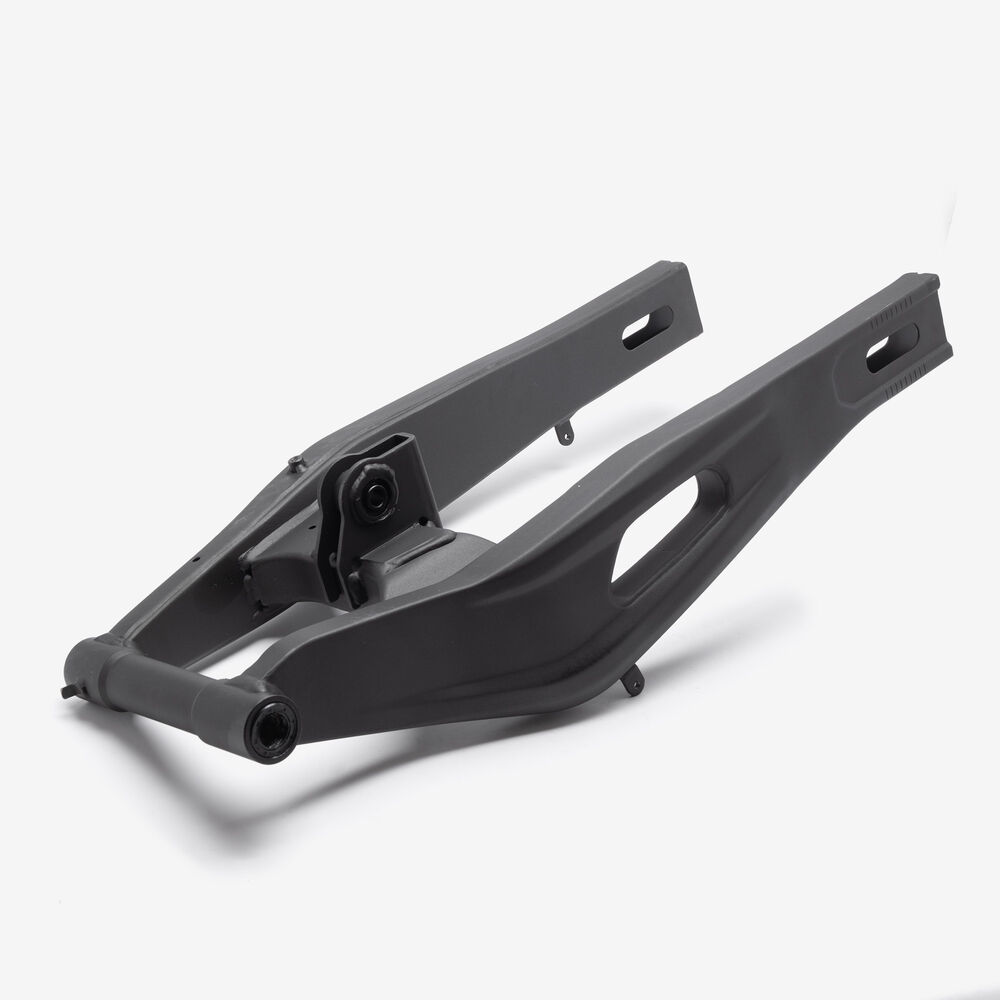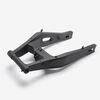 The swingarm is a key component of a motorcycle's rear suspension system. It connects the rear wheel to the motorcycle’s frame and allows the wheel to move up and down independently of the chassis. This pivoting action absorbs shocks and maintains stability, improving ride comfort and handling. The swingarm is typically made from aluminum or steel for strength and durability. It is mounted on the motorcycle's frame with a swingarm spindle or axle and is linked to the rear suspension system via a shock absorber or linkage.