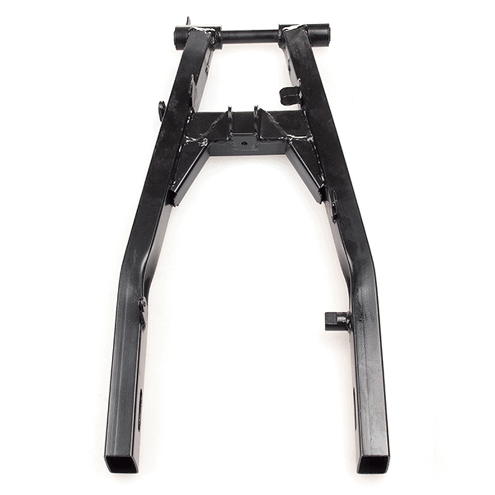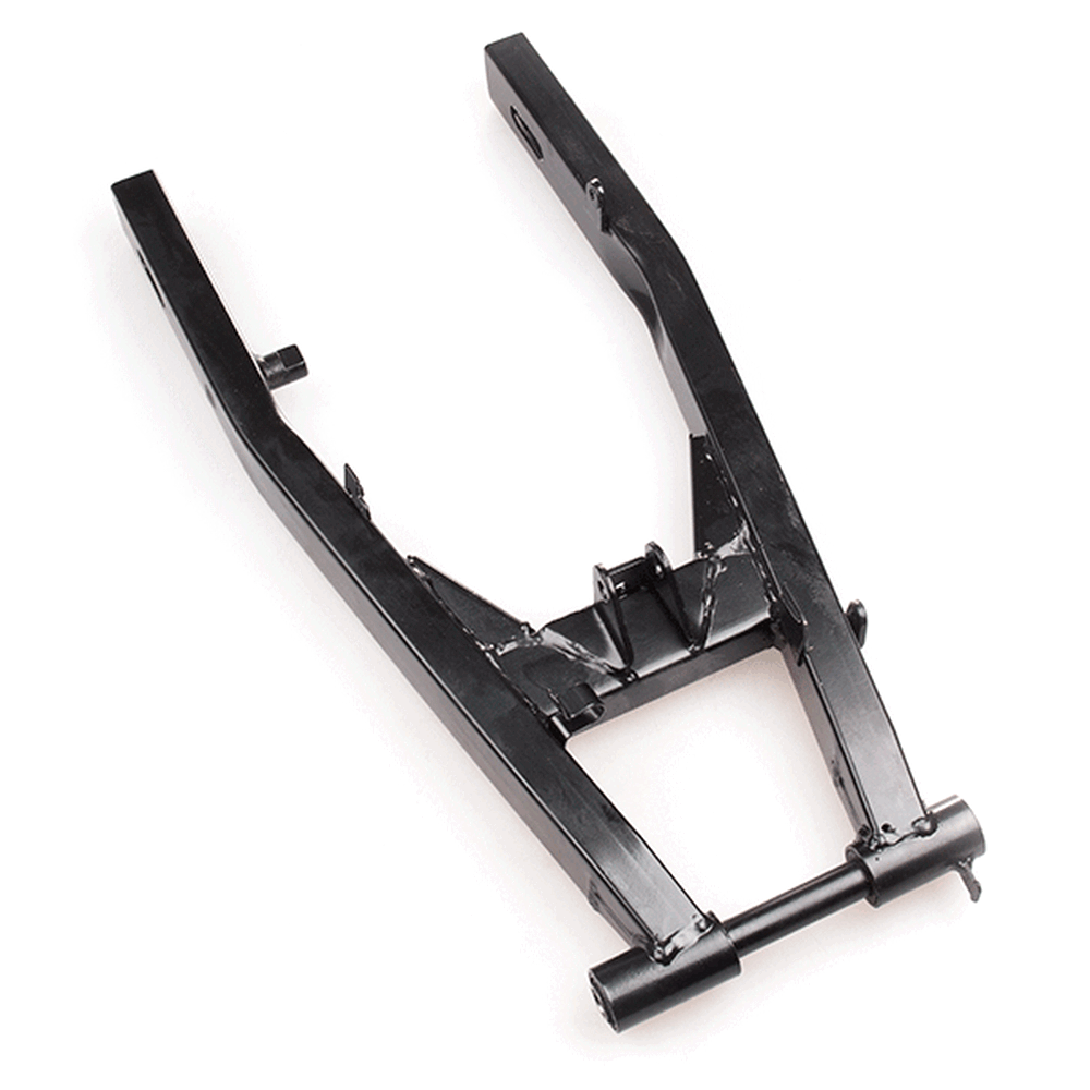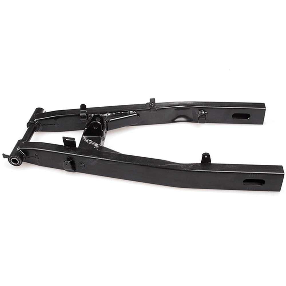 The swingarm is a key component of a motorcycle's rear suspension system. It connects the rear wheel to the motorcycle’s frame and allows the wheel to move up and down independently of the chassis. This pivoting action absorbs shocks and maintains stability, improving ride comfort and handling. The swingarm is typically made from aluminum or steel for strength and durability. It is mounted on the motorcycle's frame with a swingarm spindle or axle and is linked to the rear suspension system via a shock absorber or linkage.