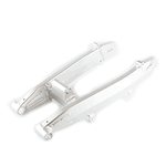The swingarm is a key component of a motorcycle's rear suspension system. It connects the rear wheel to the motorcycle’s frame and allows the wheel to move up and down independently of the chassis. This pivoting action absorbs shocks and maintains stability, improving ride comfort and handling. The swingarm is typically made from aluminum or steel for strength and durability. It is mounted on the motorcycle's frame with a swingarm spindle or axle and is linked to the rear suspension system via a shock absorber or linkage.