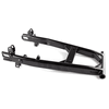 The swingarm is a key component of a motorcycle's rear suspension system. It connects the rear wheel to the motorcycle’s frame and allows the wheel to move up and down independently of the chassis. This pivoting action absorbs shocks and maintains stability, improving ride comfort and handling. The swingarm is typically made from aluminum or steel for strength and durability. It is mounted on the motorcycle's frame with a swingarm spindle or axle and is linked to the rear suspension system via a shock absorber or linkage.
