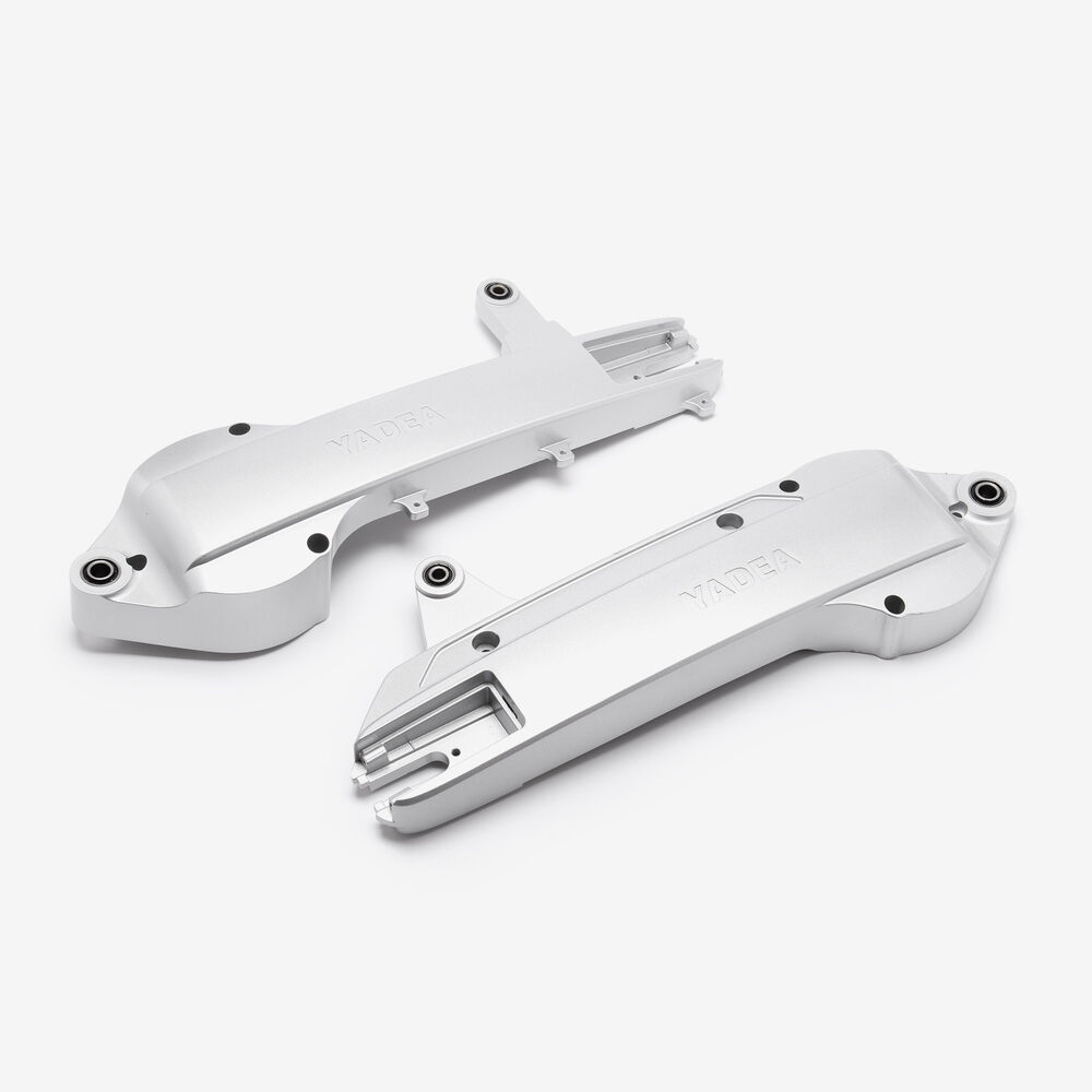 The swingarm is a key component of a motorcycle's rear suspension system. It connects the rear wheel to the motorcycle’s frame and allows the wheel to move up and down independently of the chassis. This pivoting action absorbs shocks and maintains stability, improving ride comfort and handling. The swingarm is typically made from aluminum or steel for strength and durability. It is mounted on the motorcycle's frame with a swingarm spindle or axle and is linked to the rear suspension system via a shock absorber or linkage.