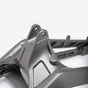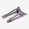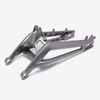 The swingarm is a key component of a motorcycle's rear suspension system. It connects the rear wheel to the motorcycle’s frame and allows the wheel to move up and down independently of the chassis. This pivoting action absorbs shocks and maintains stability, improving ride comfort and handling. The swingarm is typically made from aluminum or steel for strength and durability. It is mounted on the motorcycle's frame with a swingarm spindle or axle and is linked to the rear suspension system via a shock absorber or linkage.