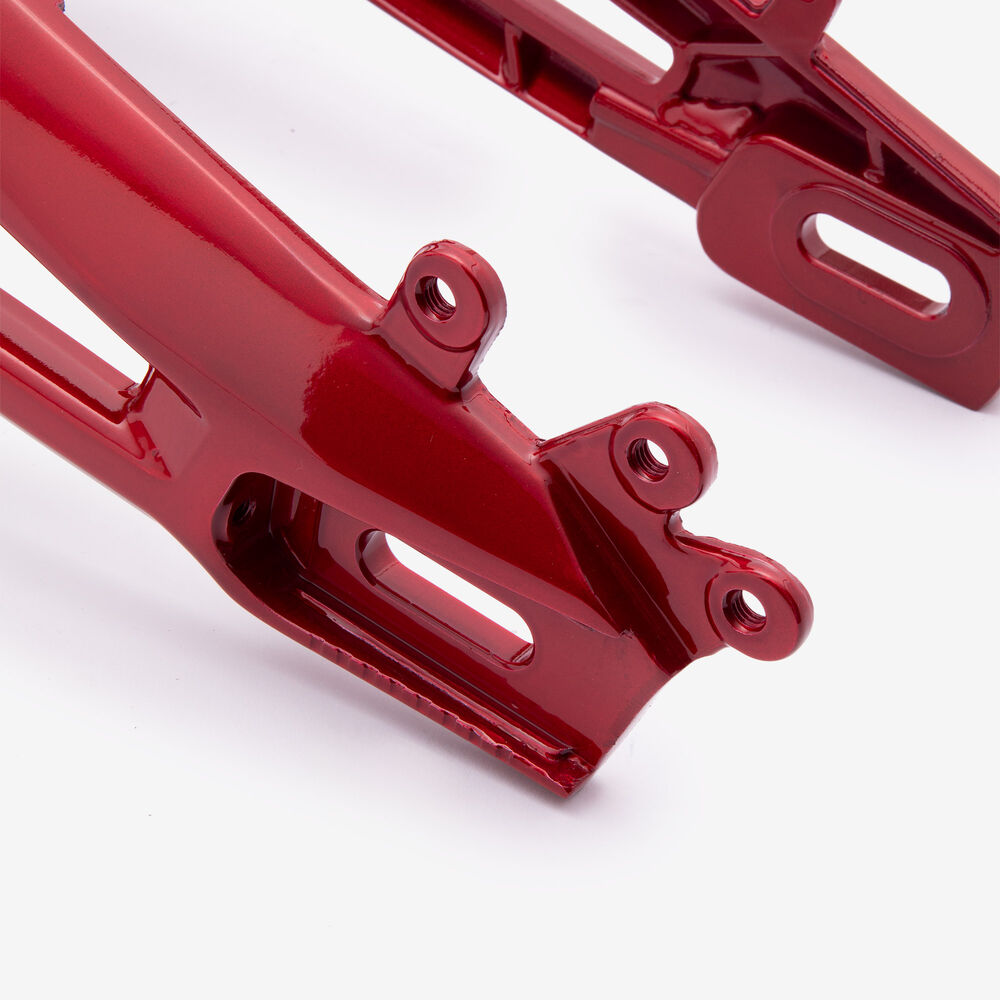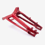 The swingarm is a key component of a motorcycle's rear suspension system. It connects the rear wheel to the motorcycle’s frame and allows the wheel to move up and down independently of the chassis. This pivoting action absorbs shocks and maintains stability, improving ride comfort and handling. The swingarm is typically made from aluminum or steel for strength and durability. It is mounted on the motorcycle's frame with a swingarm spindle or axle and is linked to the rear suspension system via a shock absorber or linkage.