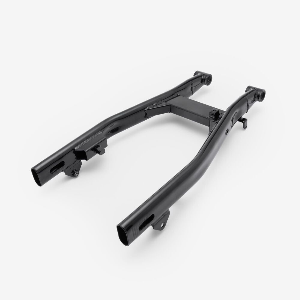 The swingarm is a key component of a motorcycle's rear suspension system. It connects the rear wheel to the motorcycle’s frame and allows the wheel to move up and down independently of the chassis. This pivoting action absorbs shocks and maintains stability, improving ride comfort and handling. The swingarm is typically made from aluminum or steel for strength and durability. It is mounted on the motorcycle's frame with a swingarm spindle or axle and is linked to the rear suspension system via a shock absorber or linkage.