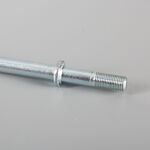 The swingarm spindle, also known as the swingarm axle, is a crucial component of a motorcycle's rear suspension system. It is a large, hardened steel rod that passes through the swingarm and connects it to the motorcycle's frame. The spindle allows the swingarm to pivot, which is essential for absorbing bumps and maintaining rear wheel stability during riding. Proper installation and maintenance of the swingarm spindle are vital for ensuring smooth and controlled rear suspension movement, contributing to overall handling and safety.