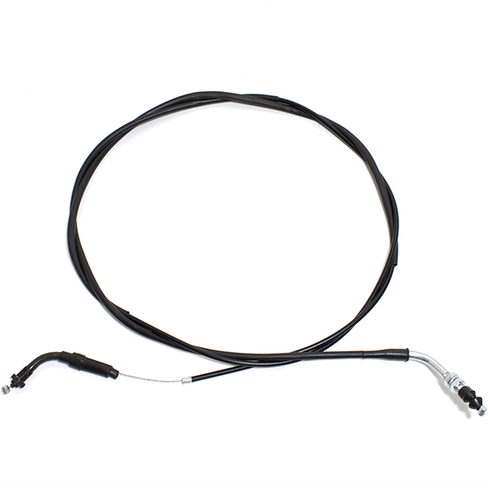 The throttle cable in a motorcycle is a flexible, wire-reinforced cable that connects the throttle grip to the throttle body or carburetor. It transmits the rider's input from twisting the throttle grip to the engine’s air intake system, allowing for precise control of engine power and acceleration. The throttle cable is designed to be durable and resistant to wear, providing smooth and reliable operation. Proper adjustment and maintenance of the throttle cable are essential for ensuring responsive throttle control and optimal engine performance.