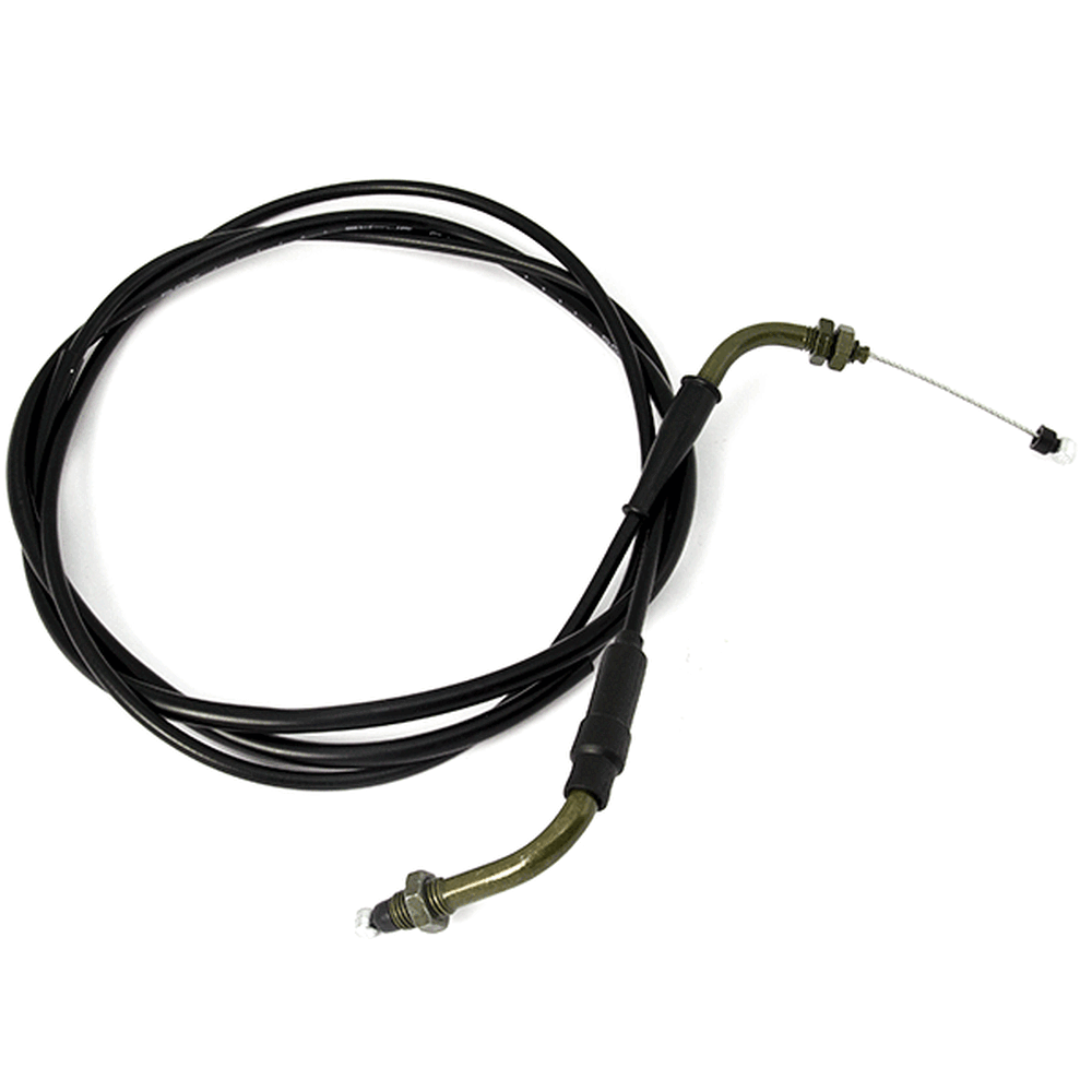 The throttle cable in a motorcycle is a flexible, wire-reinforced cable that connects the throttle grip to the throttle body or carburetor. It transmits the rider's input from twisting the throttle grip to the engine’s air intake system, allowing for precise control of engine power and acceleration. The throttle cable is designed to be durable and resistant to wear, providing smooth and reliable operation. Proper adjustment and maintenance of the throttle cable are essential for ensuring responsive throttle control and optimal engine performance.