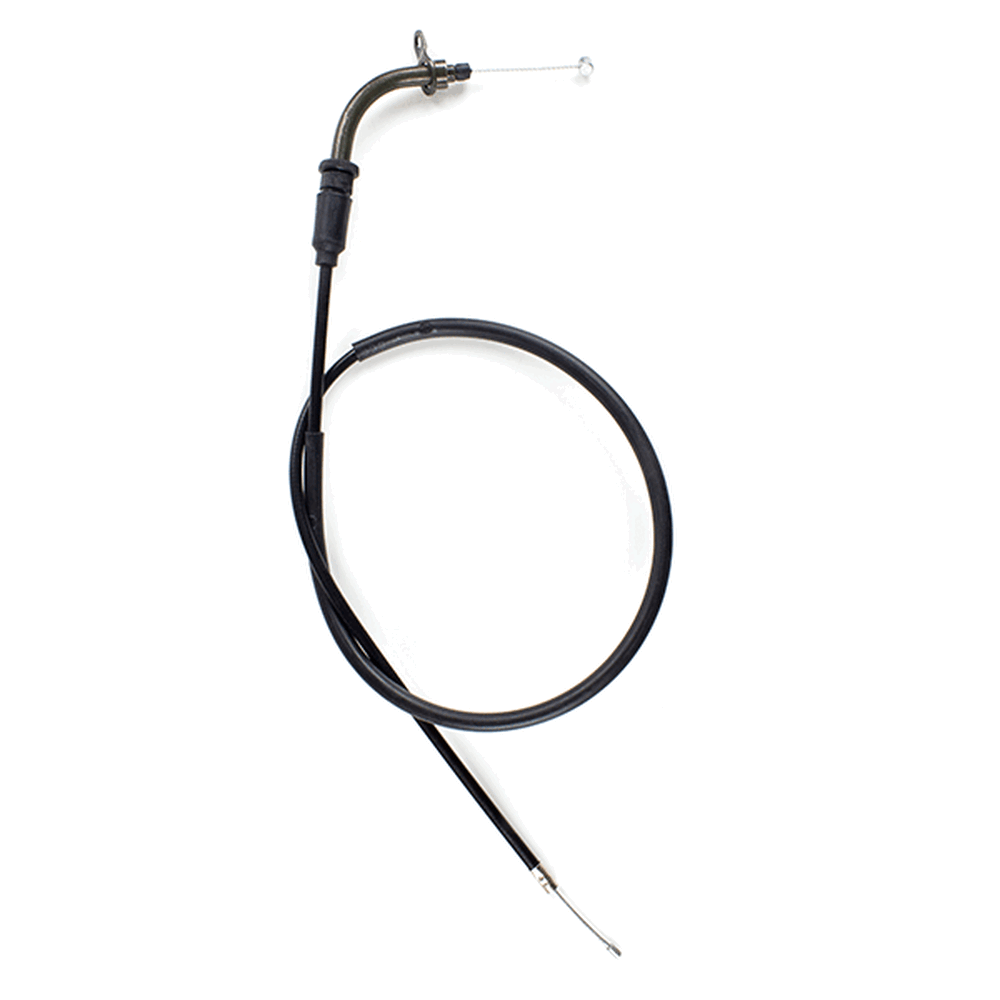 The throttle cable in a motorcycle is a flexible, wire-reinforced cable that connects the throttle grip to the throttle body or carburetor. It transmits the rider's input from twisting the throttle grip to the engine’s air intake system, allowing for precise control of engine power and acceleration. The throttle cable is designed to be durable and resistant to wear, providing smooth and reliable operation. Proper adjustment and maintenance of the throttle cable are essential for ensuring responsive throttle control and optimal engine performance.