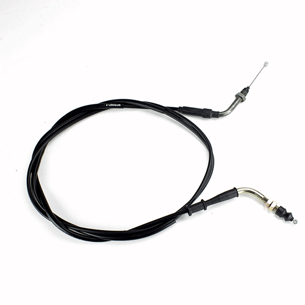 The throttle cable in a motorcycle is a flexible, wire-reinforced cable that connects the throttle grip to the throttle body or carburetor. It transmits the rider's input from twisting the throttle grip to the engine’s air intake system, allowing for precise control of engine power and acceleration. The throttle cable is designed to be durable and resistant to wear, providing smooth and reliable operation. Proper adjustment and maintenance of the throttle cable are essential for ensuring responsive throttle control and optimal engine performance.