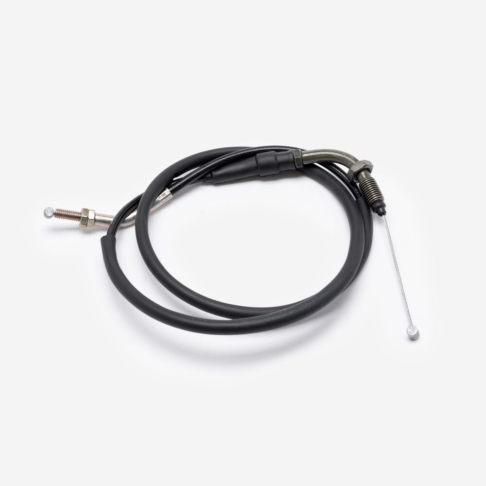 The throttle cable in a motorcycle is a flexible, wire-reinforced cable that connects the throttle grip to the throttle body or carburetor. It transmits the rider's input from twisting the throttle grip to the engine’s air intake system, allowing for precise control of engine power and acceleration. The throttle cable is designed to be durable and resistant to wear, providing smooth and reliable operation. Proper adjustment and maintenance of the throttle cable are essential for ensuring responsive throttle control and optimal engine performance.