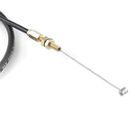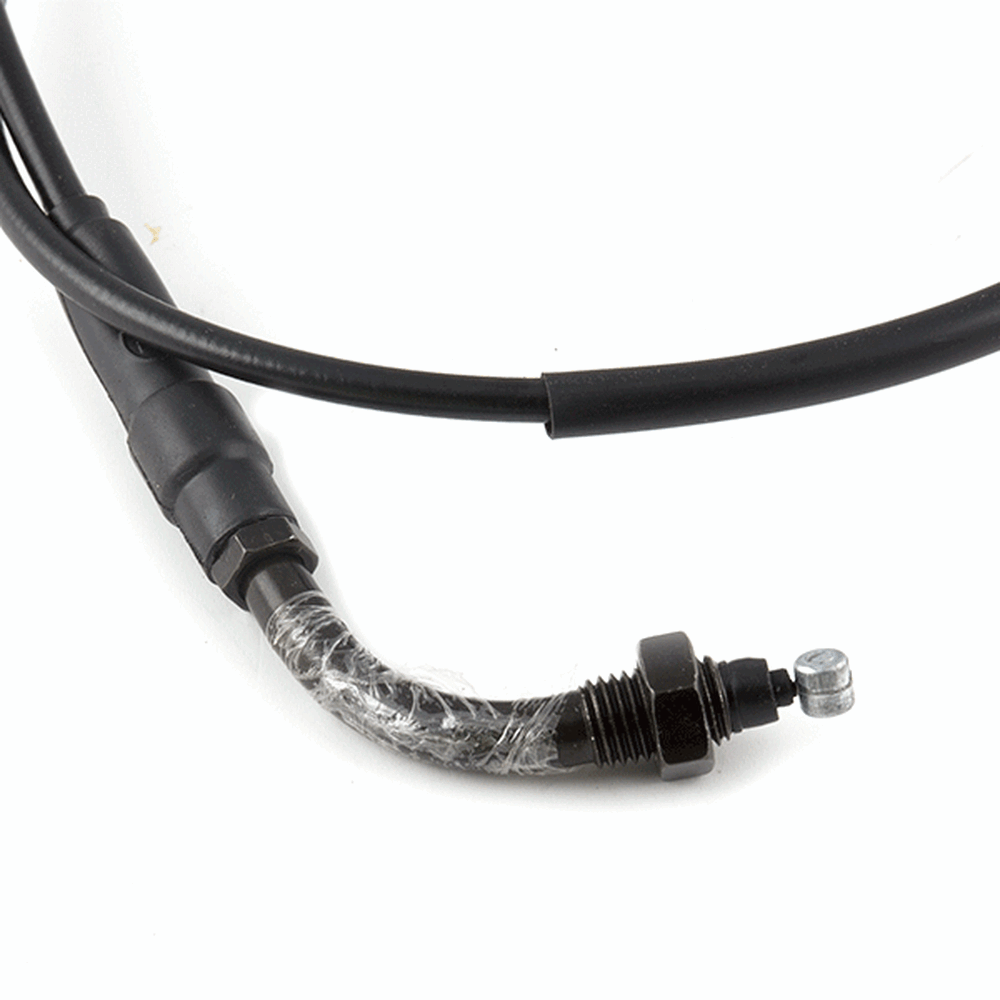 The throttle cable in a motorcycle is a flexible, wire-reinforced cable that connects the throttle grip to the throttle body or carburetor. It transmits the rider's input from twisting the throttle grip to the engine’s air intake system, allowing for precise control of engine power and acceleration. The throttle cable is designed to be durable and resistant to wear, providing smooth and reliable operation. Proper adjustment and maintenance of the throttle cable are essential for ensuring responsive throttle control and optimal engine performance.