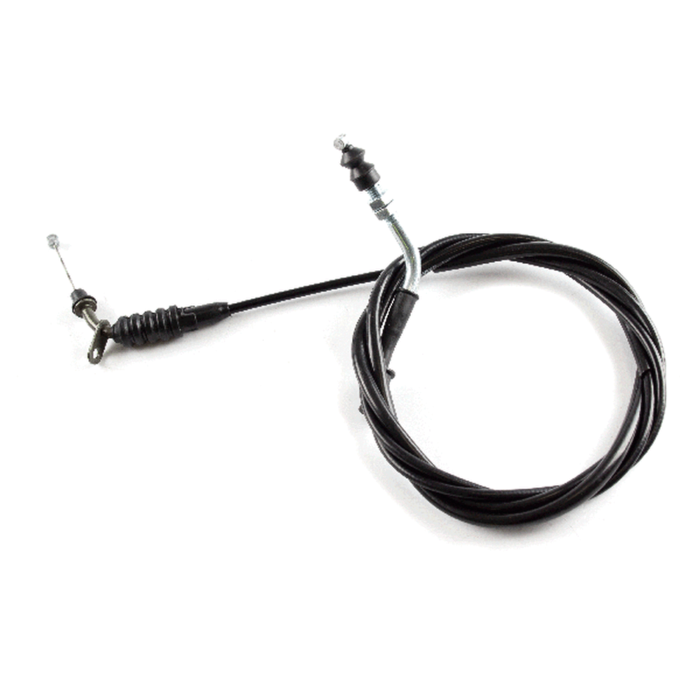 The throttle cable in a motorcycle is a flexible, wire-reinforced cable that connects the throttle grip to the throttle body or carburetor. It transmits the rider's input from twisting the throttle grip to the engine’s air intake system, allowing for precise control of engine power and acceleration. The throttle cable is designed to be durable and resistant to wear, providing smooth and reliable operation. Proper adjustment and maintenance of the throttle cable are essential for ensuring responsive throttle control and optimal engine performance.