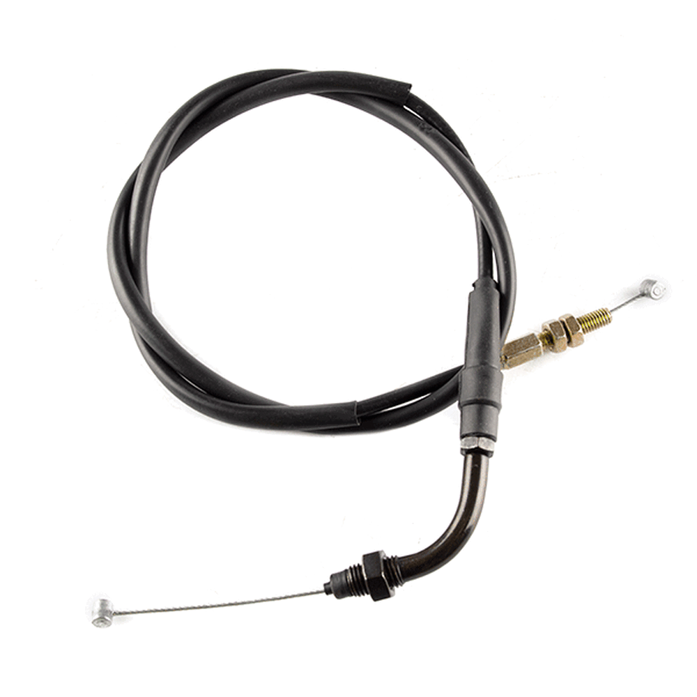 The throttle cable in a motorcycle is a flexible, wire-reinforced cable that connects the throttle grip to the throttle body or carburetor. It transmits the rider's input from twisting the throttle grip to the engine’s air intake system, allowing for precise control of engine power and acceleration. The throttle cable is designed to be durable and resistant to wear, providing smooth and reliable operation. Proper adjustment and maintenance of the throttle cable are essential for ensuring responsive throttle control and optimal engine performance.