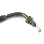 The throttle cable in a motorcycle is a flexible, wire-reinforced cable that connects the throttle grip to the throttle body or carburetor. It transmits the rider's input from twisting the throttle grip to the engine’s air intake system, allowing for precise control of engine power and acceleration. The throttle cable is designed to be durable and resistant to wear, providing smooth and reliable operation. Proper adjustment and maintenance of the throttle cable are essential for ensuring responsive throttle control and optimal engine performance.