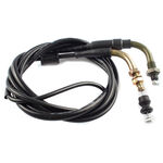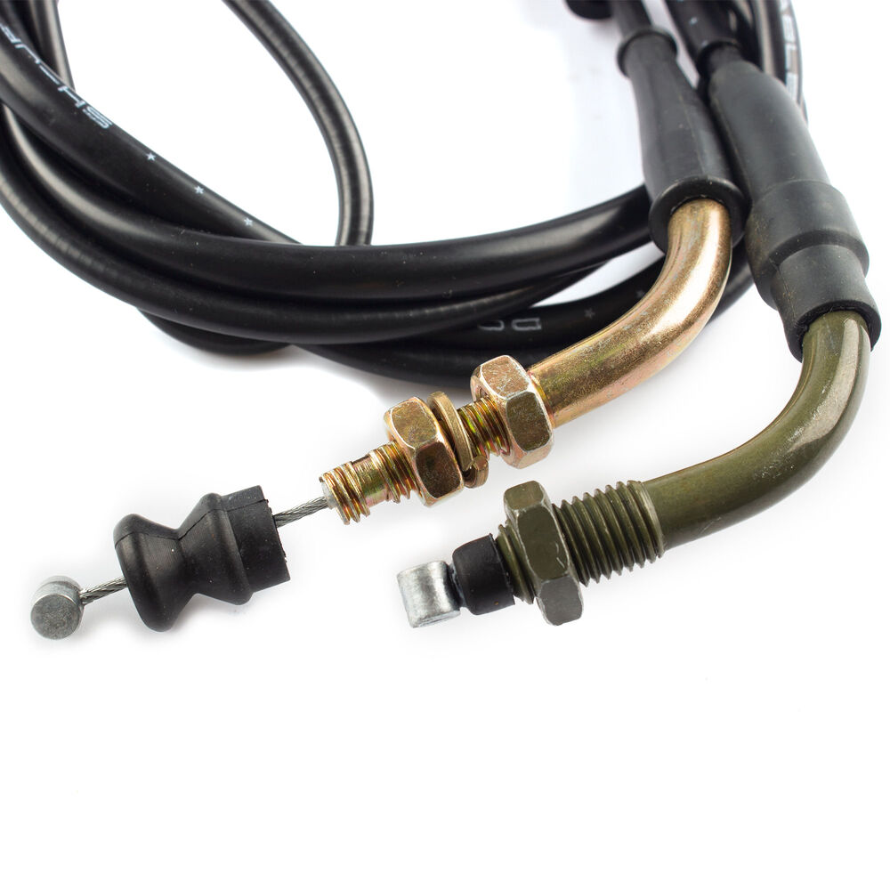 The throttle cable in a motorcycle is a flexible, wire-reinforced cable that connects the throttle grip to the throttle body or carburetor. It transmits the rider's input from twisting the throttle grip to the engine’s air intake system, allowing for precise control of engine power and acceleration. The throttle cable is designed to be durable and resistant to wear, providing smooth and reliable operation. Proper adjustment and maintenance of the throttle cable are essential for ensuring responsive throttle control and optimal engine performance.