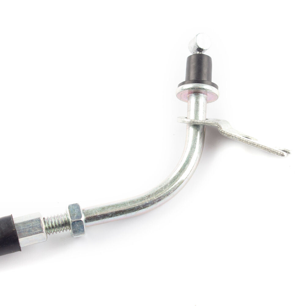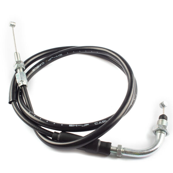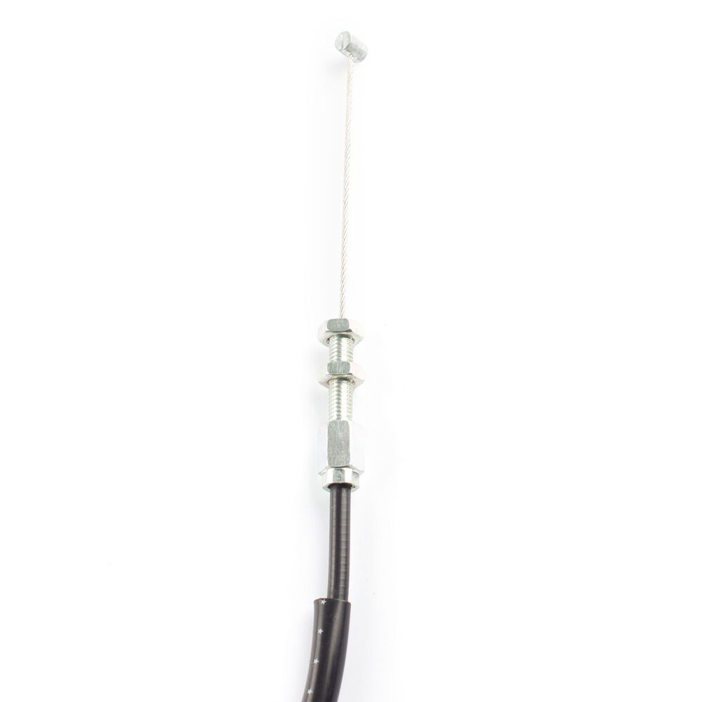 The throttle cable in a motorcycle is a flexible, wire-reinforced cable that connects the throttle grip to the throttle body or carburetor. It transmits the rider's input from twisting the throttle grip to the engine’s air intake system, allowing for precise control of engine power and acceleration. The throttle cable is designed to be durable and resistant to wear, providing smooth and reliable operation. Proper adjustment and maintenance of the throttle cable are essential for ensuring responsive throttle control and optimal engine performance.