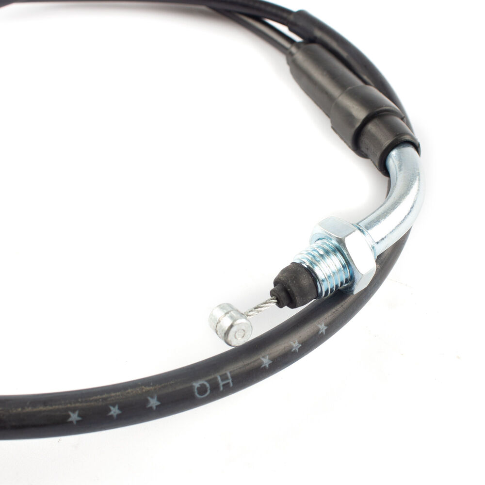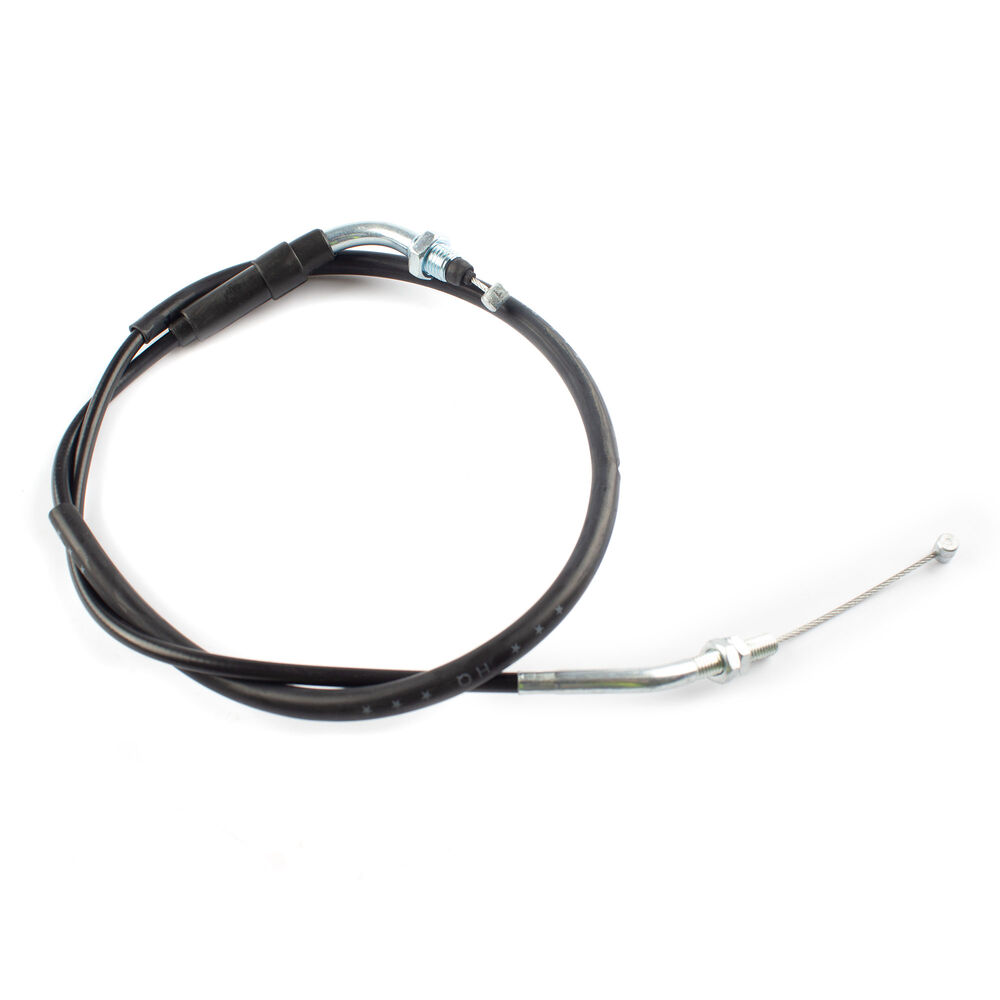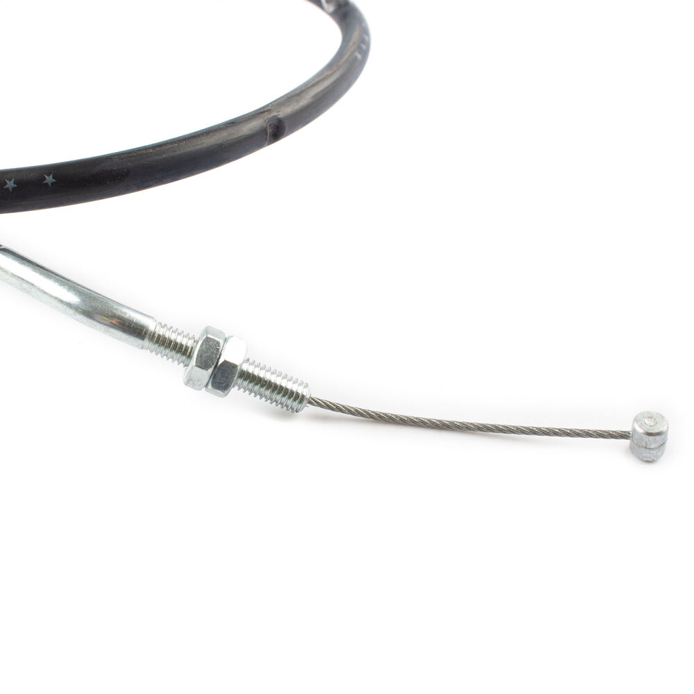 The throttle cable in a motorcycle is a flexible, wire-reinforced cable that connects the throttle grip to the throttle body or carburetor. It transmits the rider's input from twisting the throttle grip to the engine’s air intake system, allowing for precise control of engine power and acceleration. The throttle cable is designed to be durable and resistant to wear, providing smooth and reliable operation. Proper adjustment and maintenance of the throttle cable are essential for ensuring responsive throttle control and optimal engine performance.