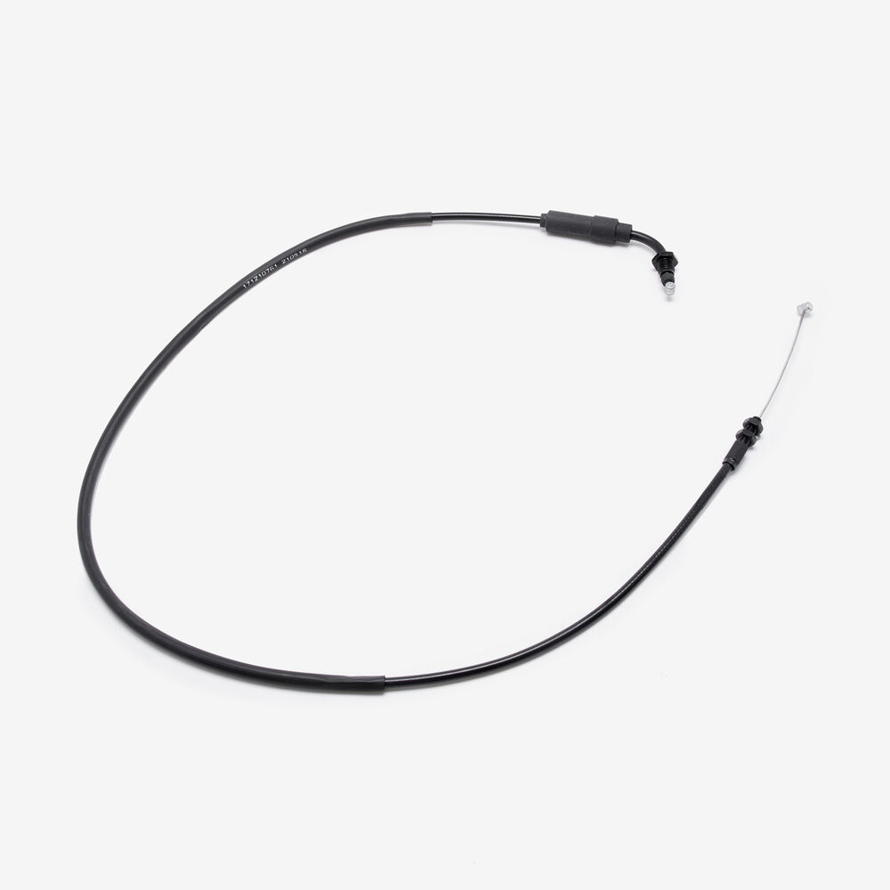 The throttle cable in a motorcycle is a flexible, wire-reinforced cable that connects the throttle grip to the throttle body or carburetor. It transmits the rider's input from twisting the throttle grip to the engine’s air intake system, allowing for precise control of engine power and acceleration. The throttle cable is designed to be durable and resistant to wear, providing smooth and reliable operation. Proper adjustment and maintenance of the throttle cable are essential for ensuring responsive throttle control and optimal engine performance.