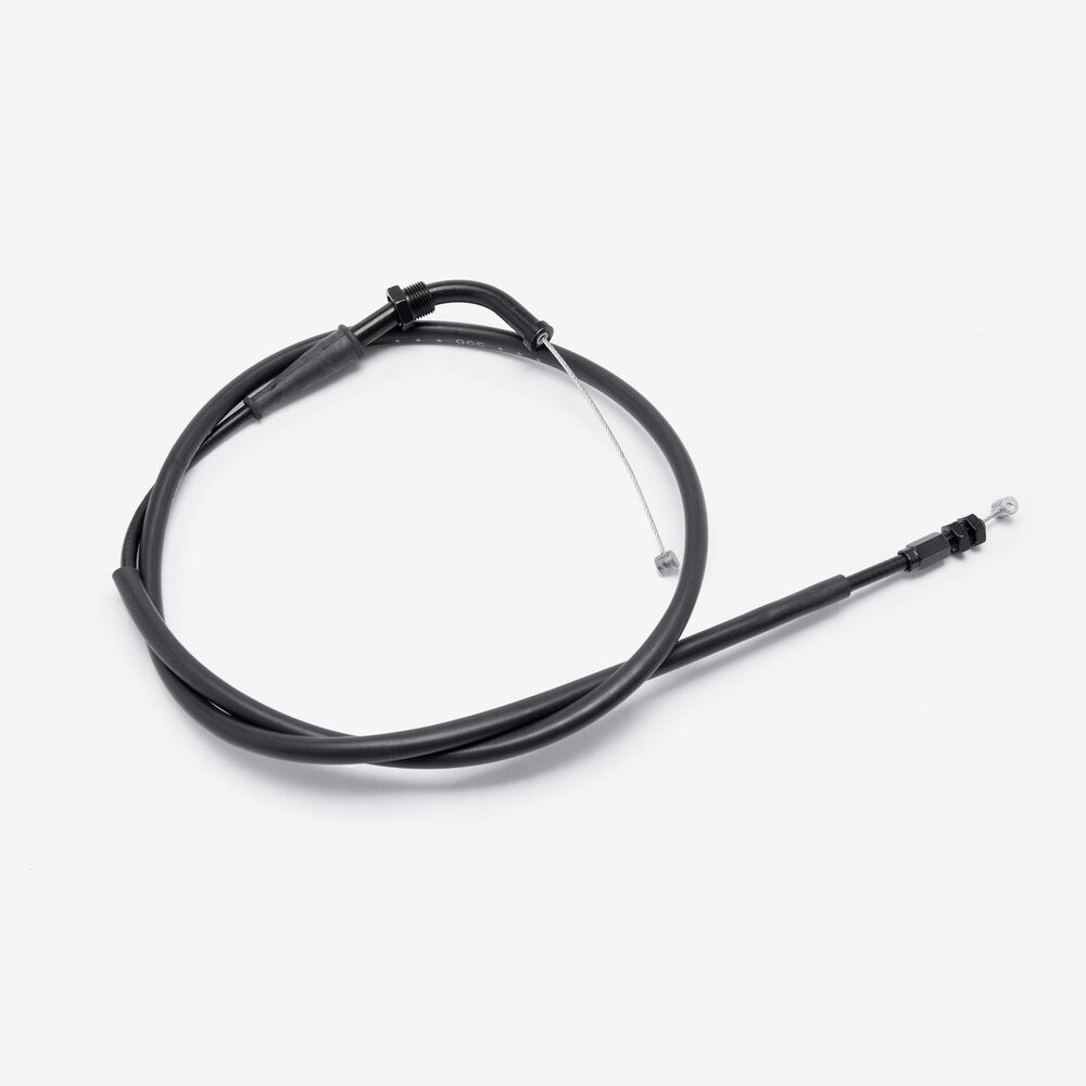 The throttle cable in a motorcycle is a flexible, wire-reinforced cable that connects the throttle grip to the throttle body or carburetor. It transmits the rider's input from twisting the throttle grip to the engine’s air intake system, allowing for precise control of engine power and acceleration. The throttle cable is designed to be durable and resistant to wear, providing smooth and reliable operation. Proper adjustment and maintenance of the throttle cable are essential for ensuring responsive throttle control and optimal engine performance.