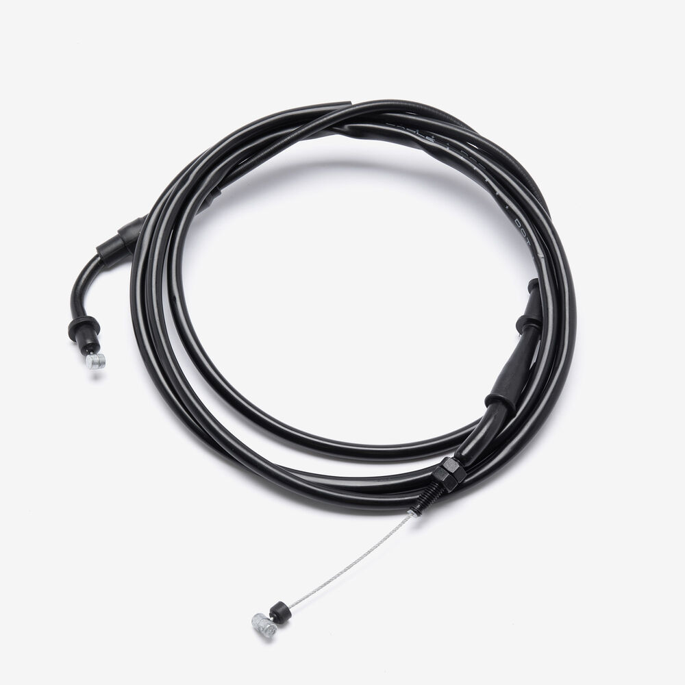 The throttle cable in a motorcycle is a flexible, wire-reinforced cable that connects the throttle grip to the throttle body or carburetor. It transmits the rider's input from twisting the throttle grip to the engine’s air intake system, allowing for precise control of engine power and acceleration. The throttle cable is designed to be durable and resistant to wear, providing smooth and reliable operation. Proper adjustment and maintenance of the throttle cable are essential for ensuring responsive throttle control and optimal engine performance.