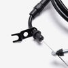 The throttle cable in a motorcycle is a flexible, wire-reinforced cable that connects the throttle grip to the throttle body or carburetor. It transmits the rider's input from twisting the throttle grip to the engine’s air intake system, allowing for precise control of engine power and acceleration. The throttle cable is designed to be durable and resistant to wear, providing smooth and reliable operation. Proper adjustment and maintenance of the throttle cable are essential for ensuring responsive throttle control and optimal engine performance.