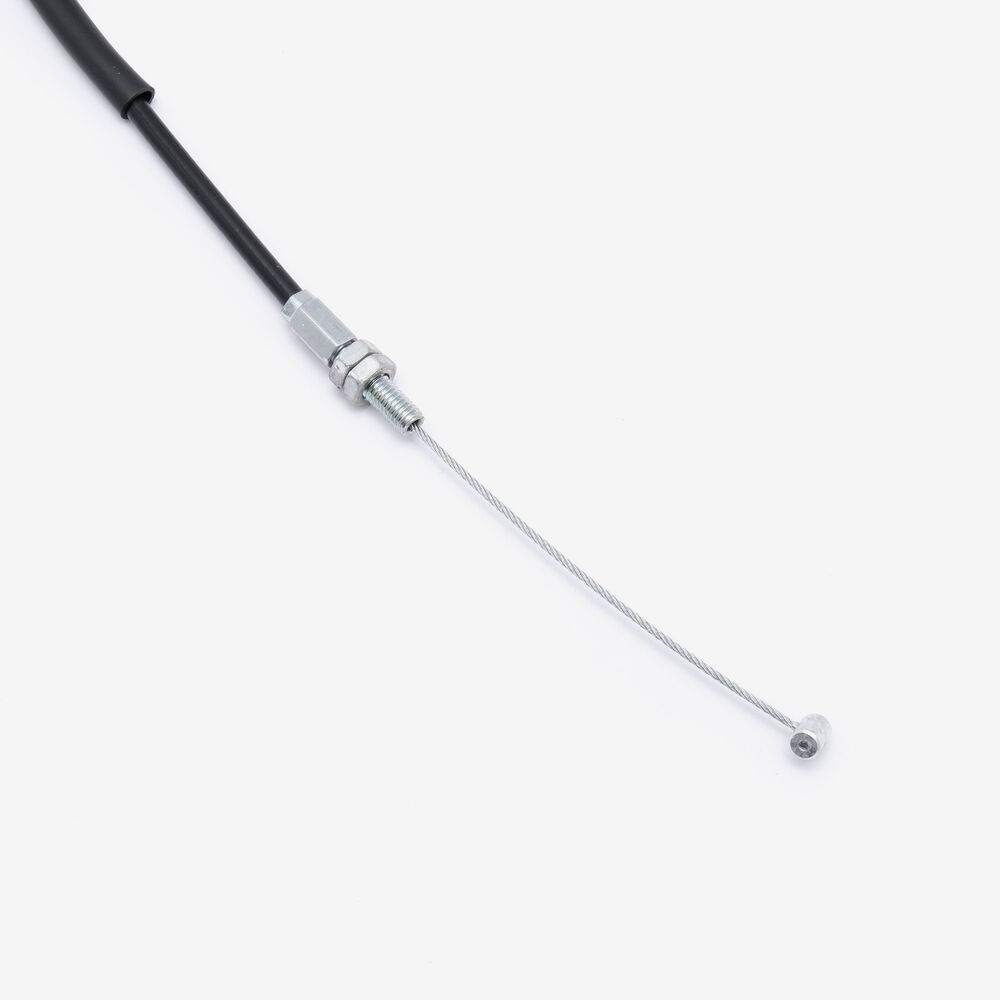 The throttle cable in a motorcycle is a flexible, wire-reinforced cable that connects the throttle grip to the throttle body or carburetor. It transmits the rider's input from twisting the throttle grip to the engine’s air intake system, allowing for precise control of engine power and acceleration. The throttle cable is designed to be durable and resistant to wear, providing smooth and reliable operation. Proper adjustment and maintenance of the throttle cable are essential for ensuring responsive throttle control and optimal engine performance.