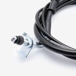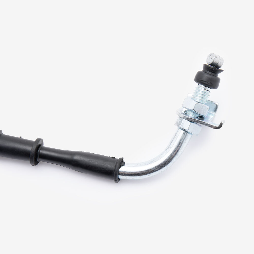 The throttle cable in a motorcycle is a flexible, wire-reinforced cable that connects the throttle grip to the throttle body or carburetor. It transmits the rider's input from twisting the throttle grip to the engine’s air intake system, allowing for precise control of engine power and acceleration. The throttle cable is designed to be durable and resistant to wear, providing smooth and reliable operation. Proper adjustment and maintenance of the throttle cable are essential for ensuring responsive throttle control and optimal engine performance.
